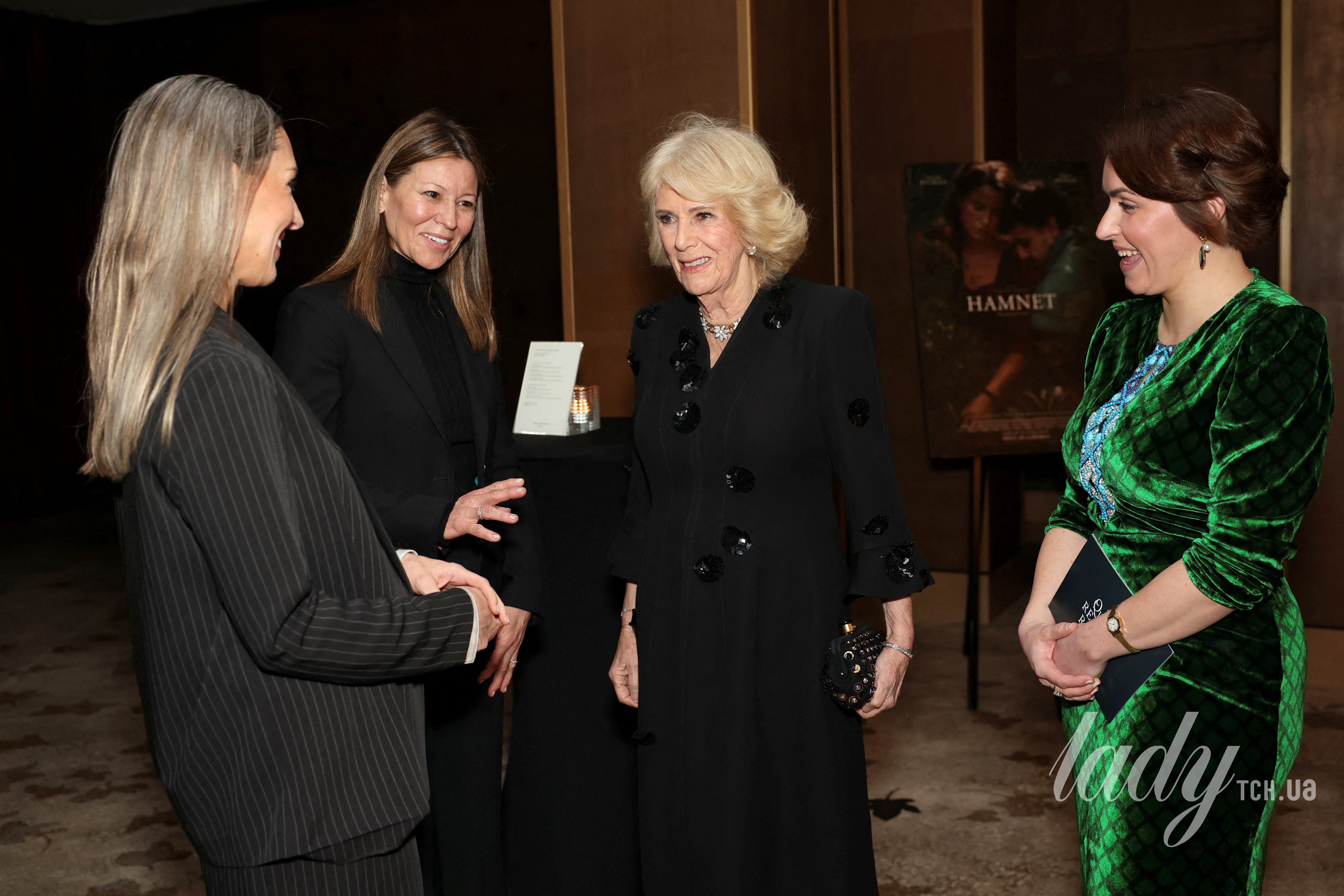 А ввечері Камілла завітала на спеціальний показ фільму «Гамнет», організований у читальному залі королеви в готелі May Fair у Лондоні. У фільмі розповідається вигадана історія життя сина Вільяма Шекспіра Гамнета, який помер у юному віці.