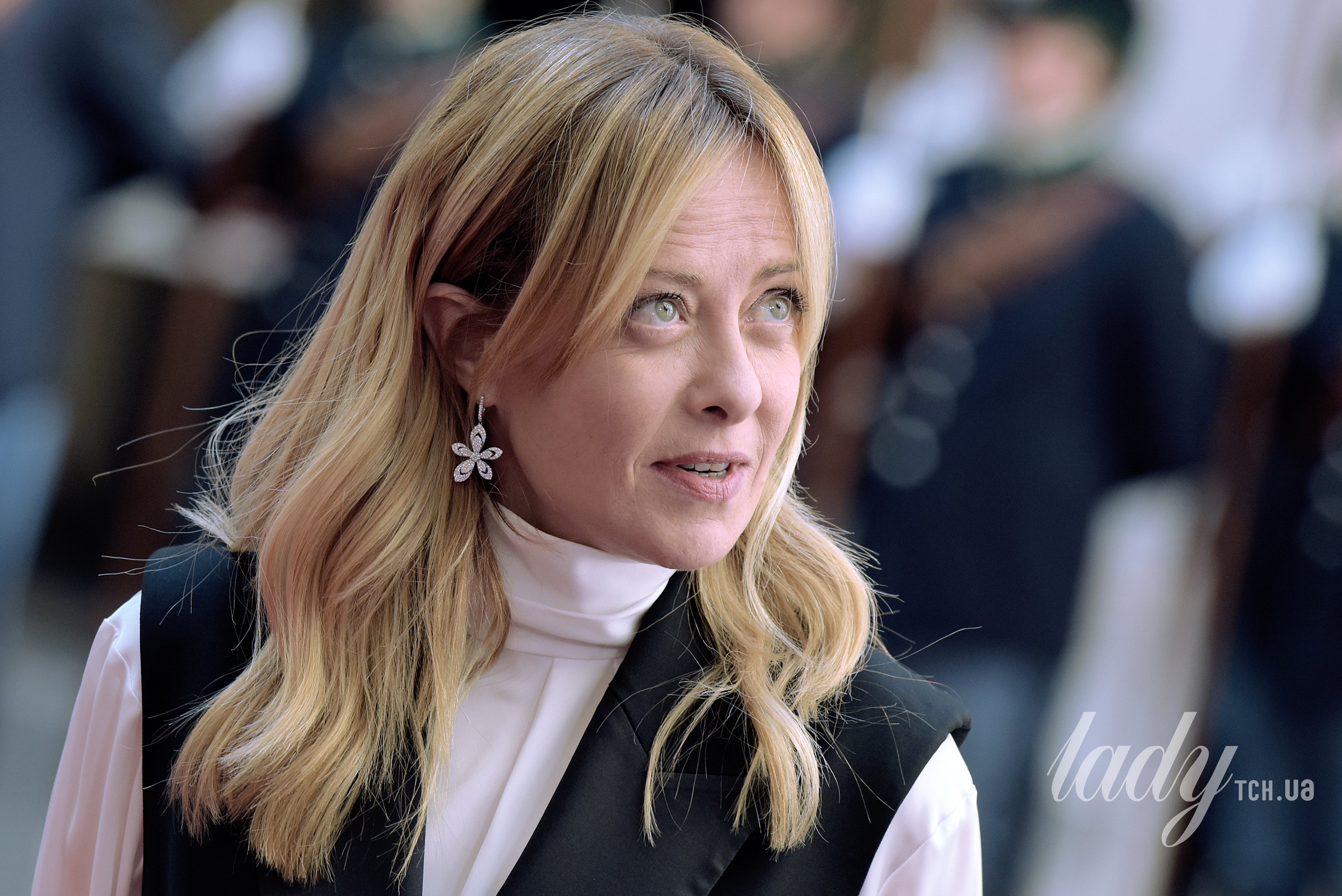 У двобортному жилеті і з сережками-квітами: прем’єр-міністерка Італії Джорджа Мелоні на зустрічі з колегою