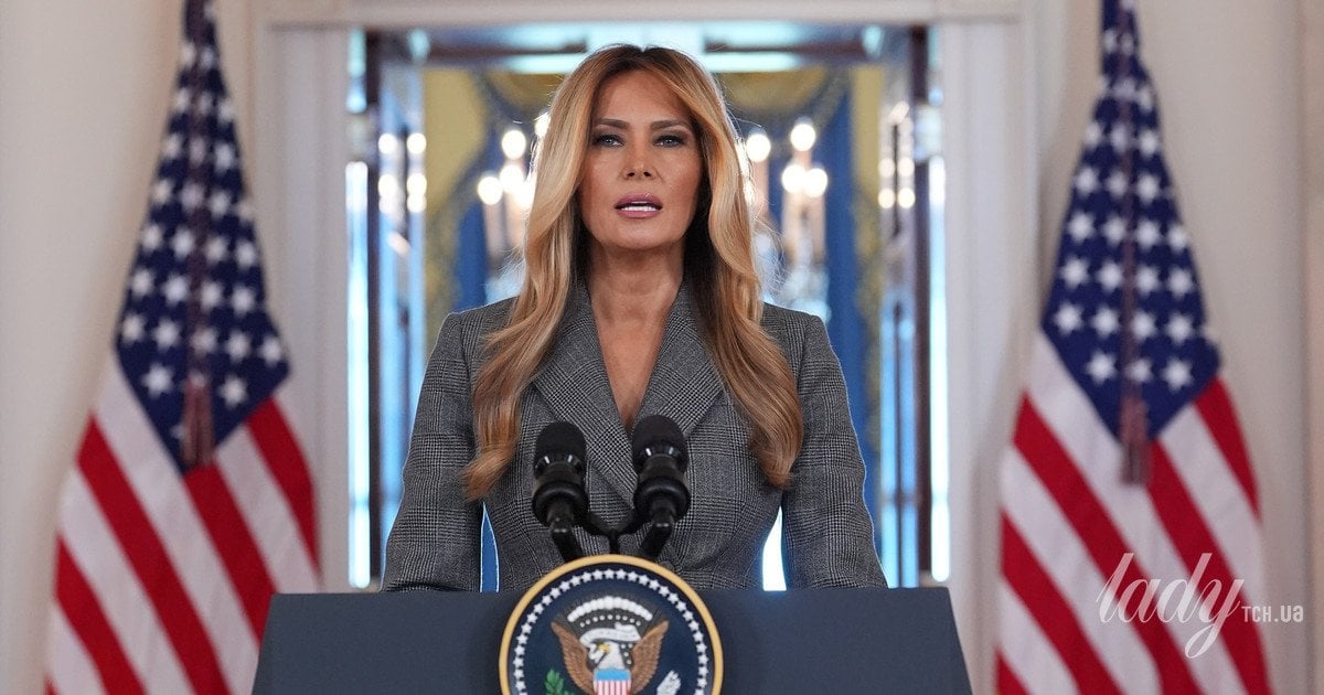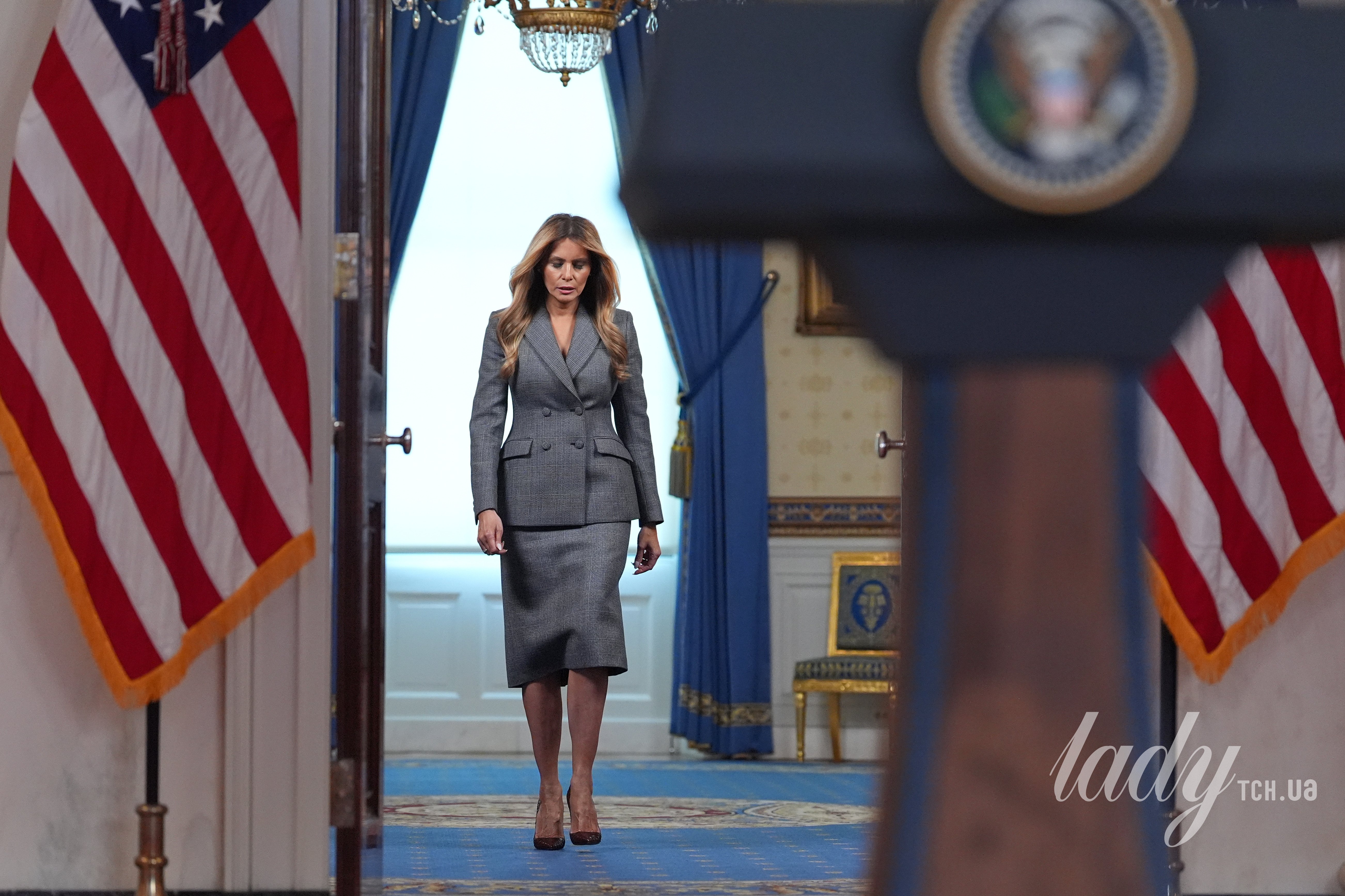 У картатому костюмі Prada і пітонових туфлях: красива Меланія Трамп поспілкувалася з журналістами