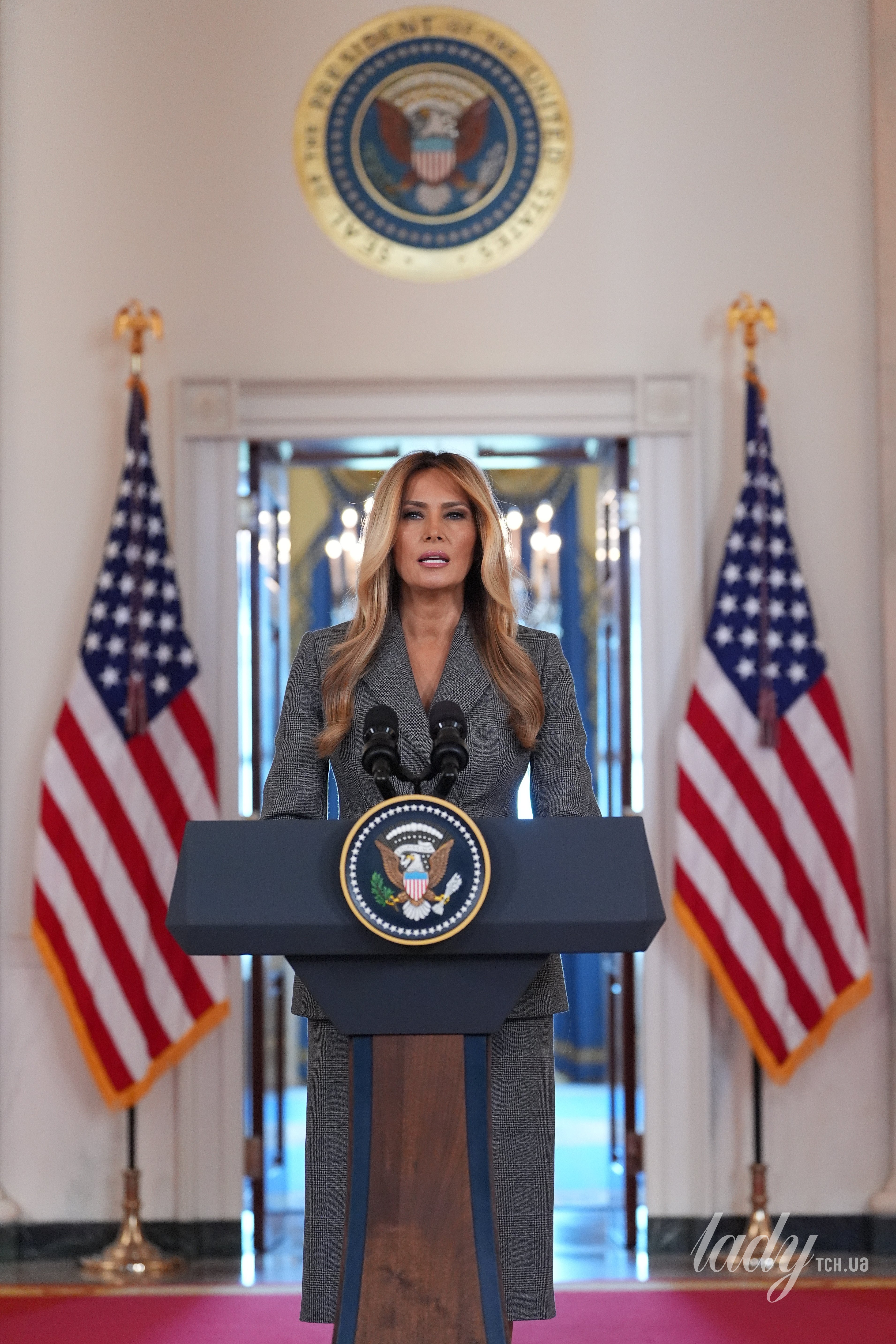 Меланія Трамп поспілкувалася з журналістами у Великому фойє Білого дому у Вашингтоні.