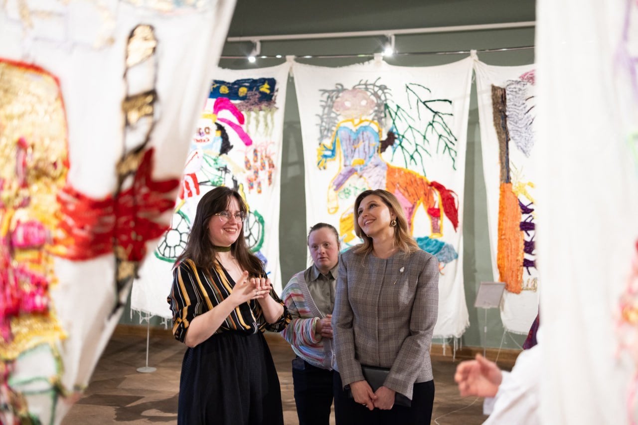 Олена Зеленська відвідала у Національному музеї мистецтв Ханенків персональну виставку мультимедійноїї художниці Анни Сапон — співзасновниці майстерні «Ательєнормально» та мистецького центру «Прекарня», створених спеціально для спільної роботи нейротипових і нейровідмінних митців та мисткинь.