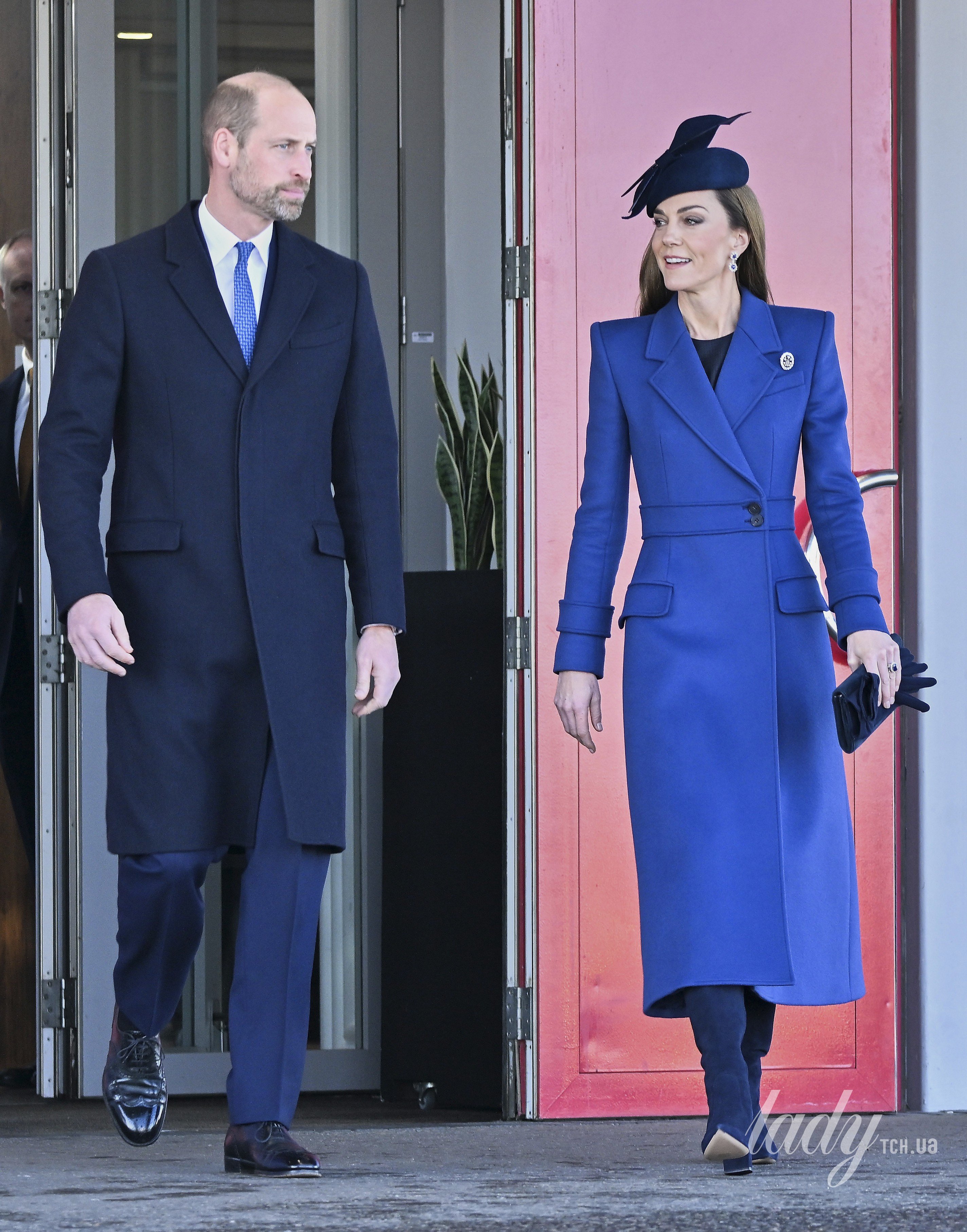 Кетрін одягла ідеально пошите класичне пальто від бренду McQueen, виконане у розкішному «королівському синьому» кольорі, яке носила у поєднанні з замшевими чоботами від Gianvito Rossi та оригінальним капелюшком Juliette Botterill Millinery. Під пальтом принцеса носила сукню від Burberry.