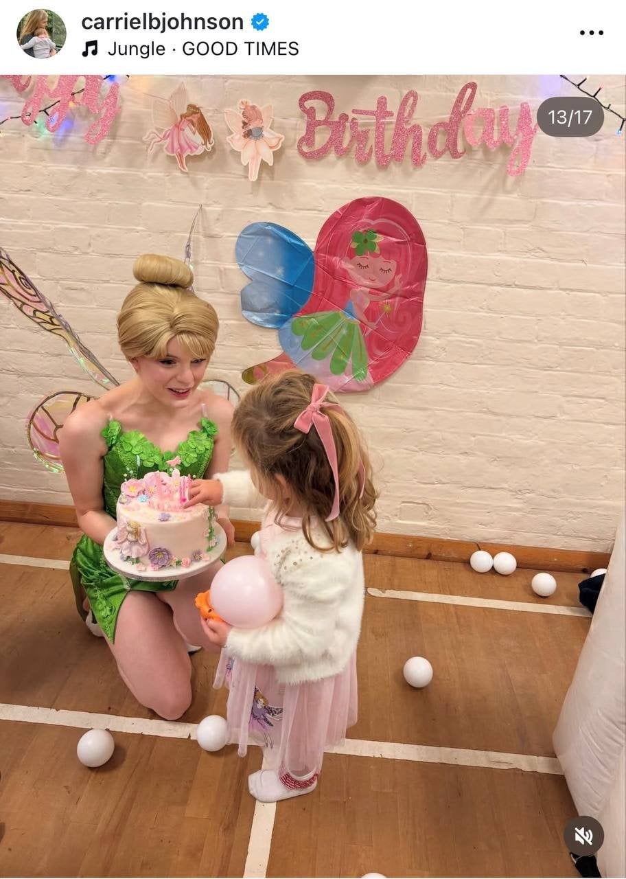 37-річна Керрі Джонсон — дружина колишнього прем’єр-міністра Великої Британії Бориса Джонсона — показала у своєму Instagram фото й відео зі святкування дня народження їхньої спільної доньки Ромі.