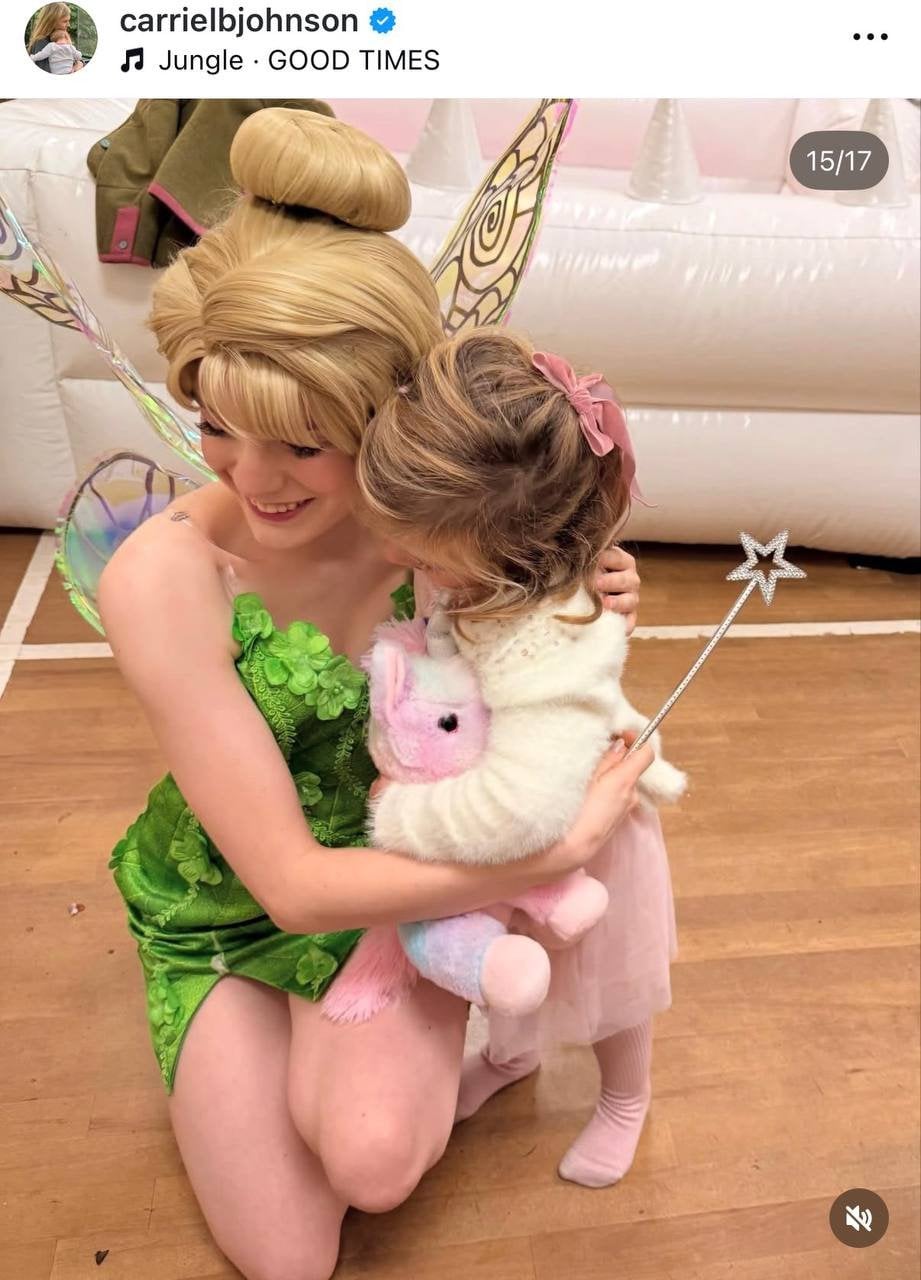 Також Керрі поділилася кумедним відео, на якому її чоловік Борис у костюмі феї Дінь-Дінь намагається повторити танець за аніматорами.