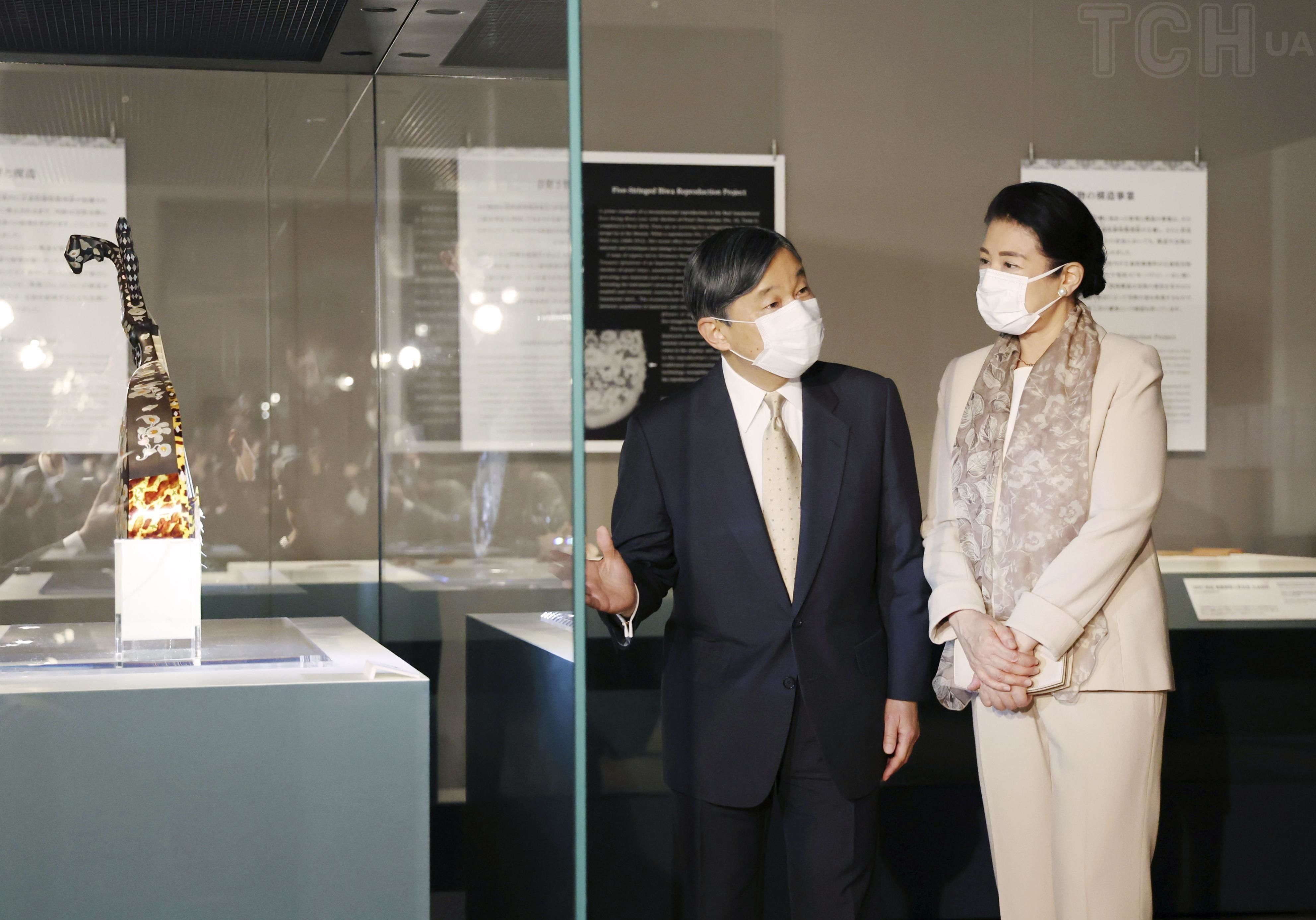 Японський імператор Нарухіто та імператриця Масако відвідали музей Мейдзі Джінгу в Токіо. Там вони оглянули виставку "Успадкування скарбів Шосоін".