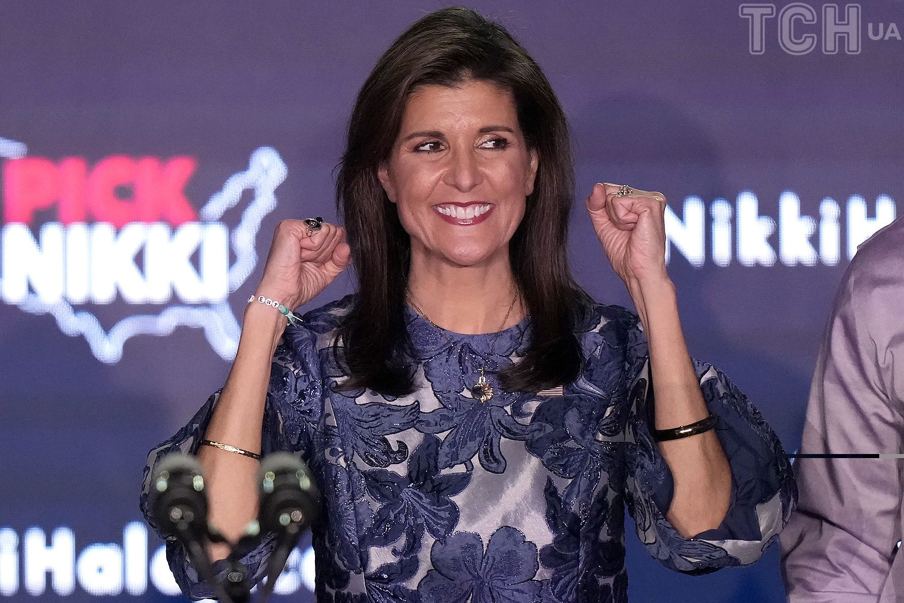 Ніккі Гейлі обрала для свого виходу вбрання з флористичним мотивом.