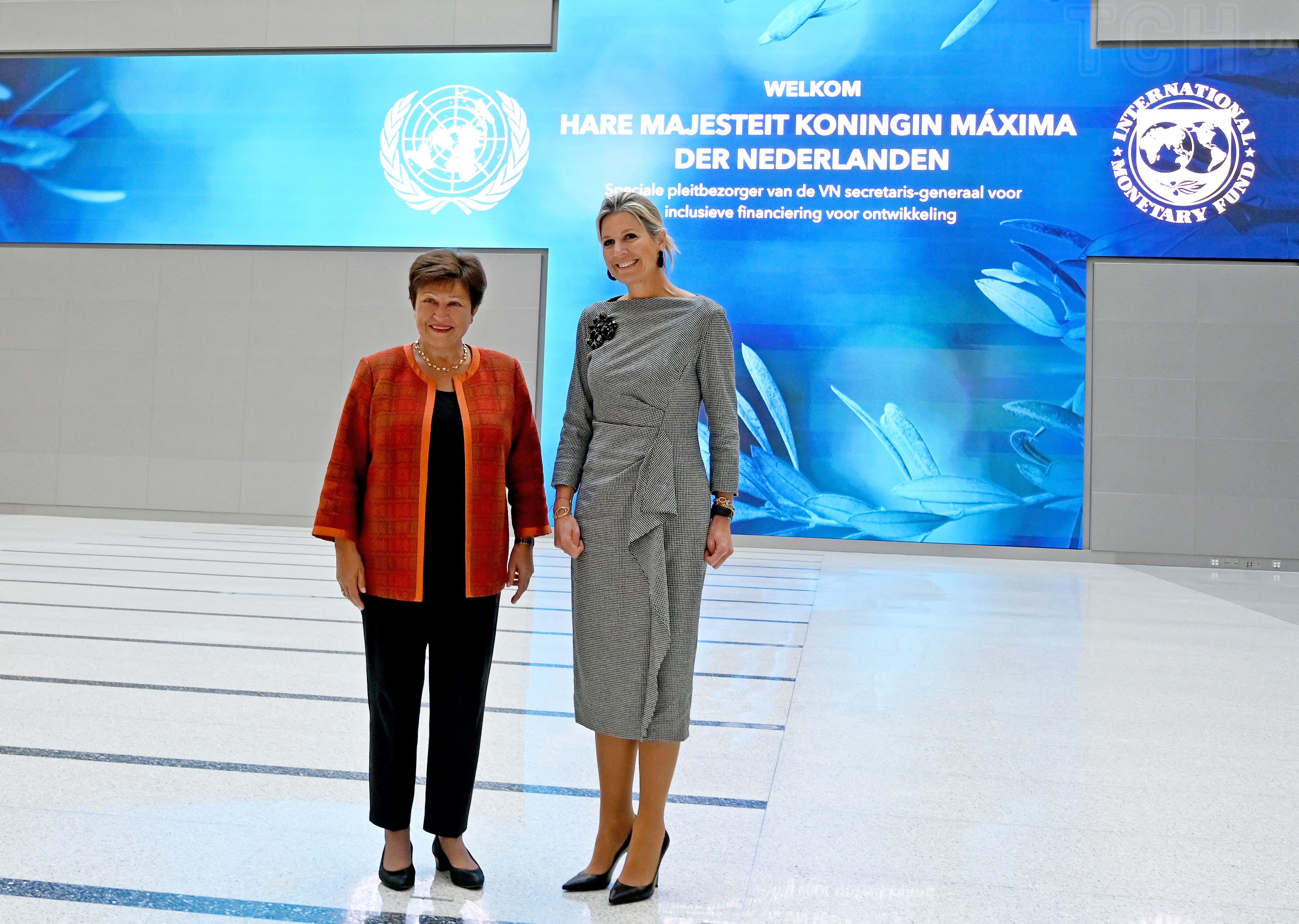 Її Величність королева Максима зустрілася з директоркою Міжнародного валютного фонду Крісталіною Георгієвою у штабквартирі МВФ у Вашингтоні.