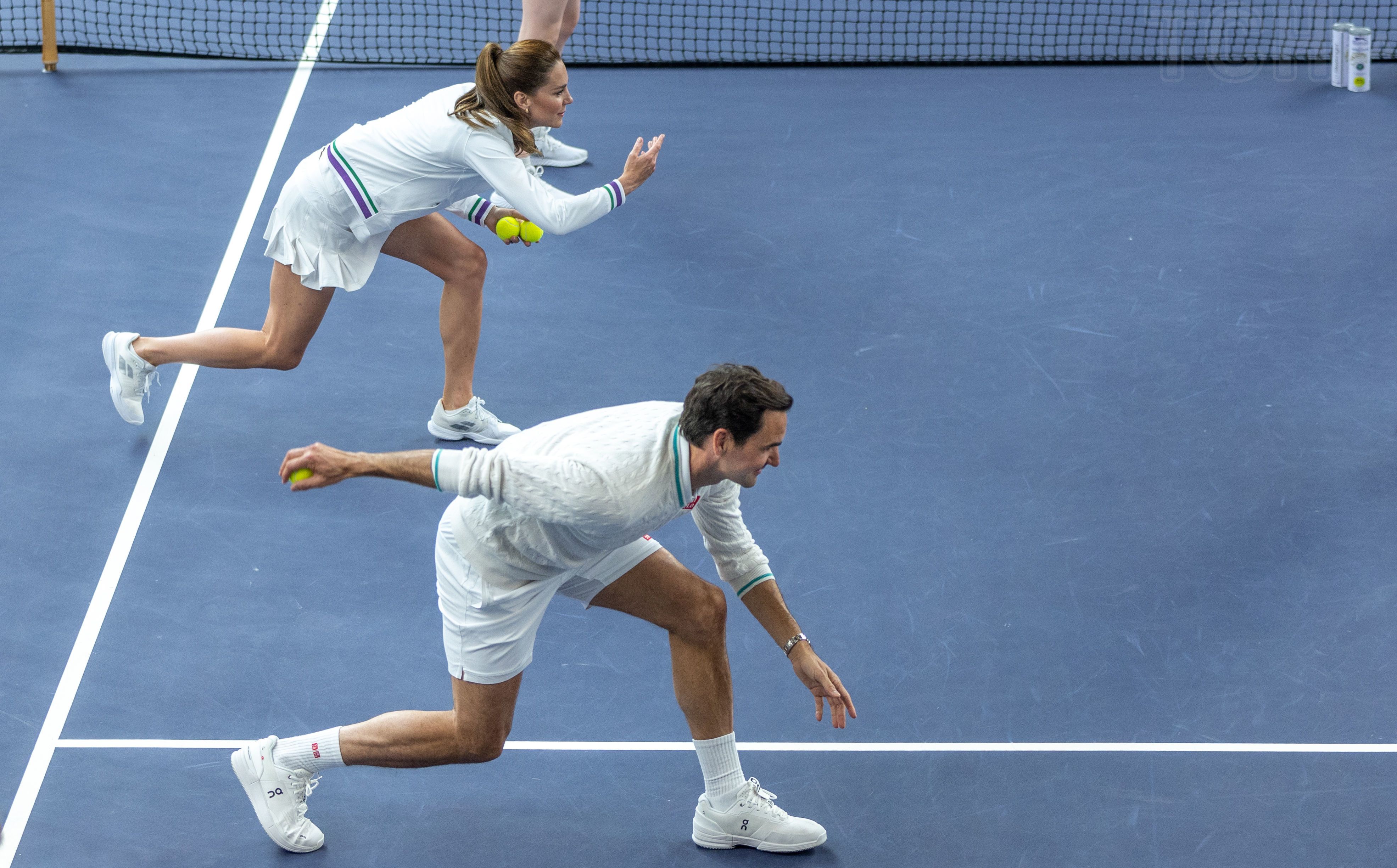 Кейт Міддлтон як патрон Всеанглійського клубу лаун-тенісу та крокету з'явилася в ролику Ball boys та ball girls. Відео починається з того, що принцеса Кейт у білій тенісній майці, тенісній спідниці в тон та з високим хвостом вітає Федерера на корті і розмовляє з ним перед початком парного матчу.