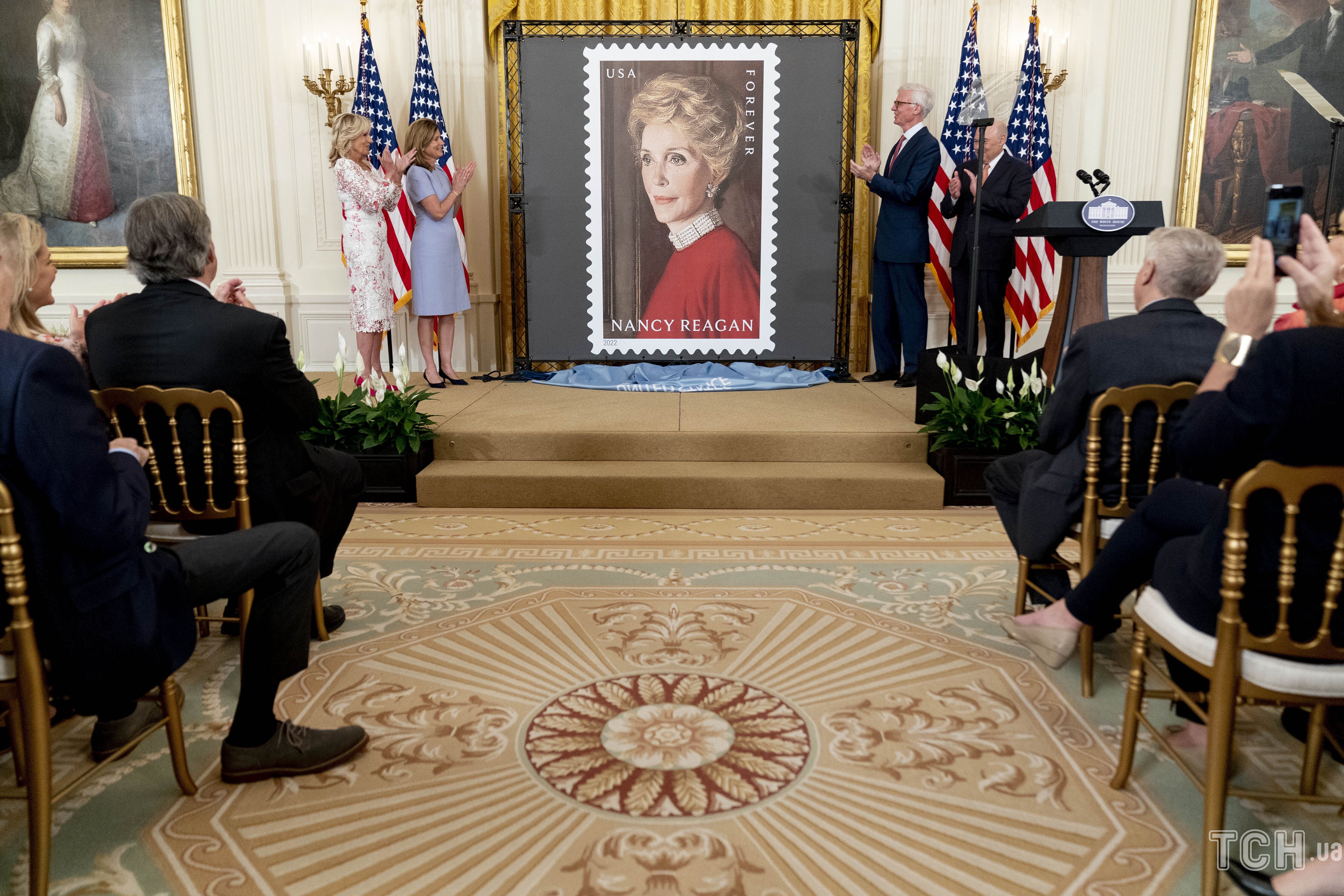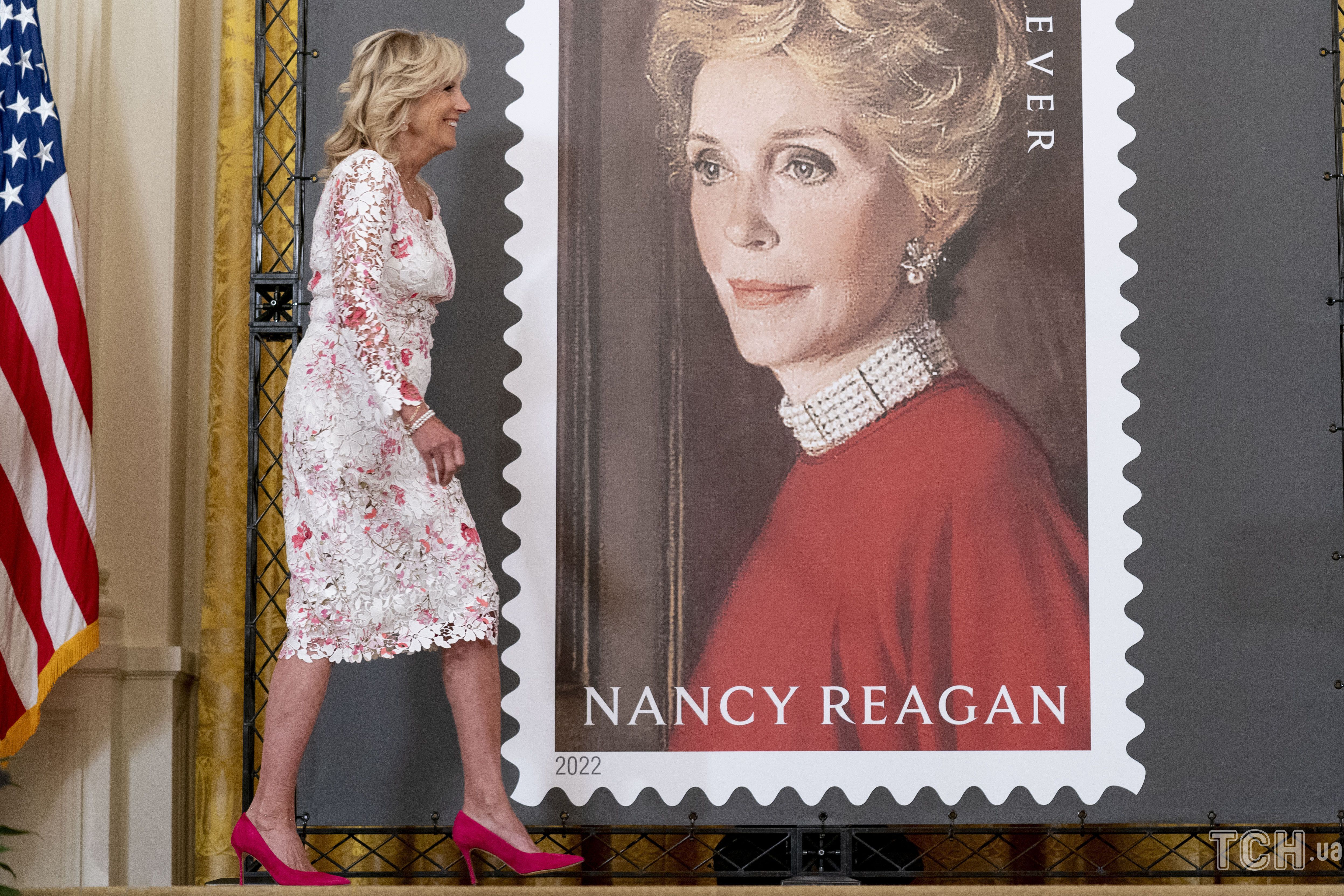 Пані Байден взяла участь у заході, на якому показали поштову марку із зображенням експершої леді США Ненсі Рейган.