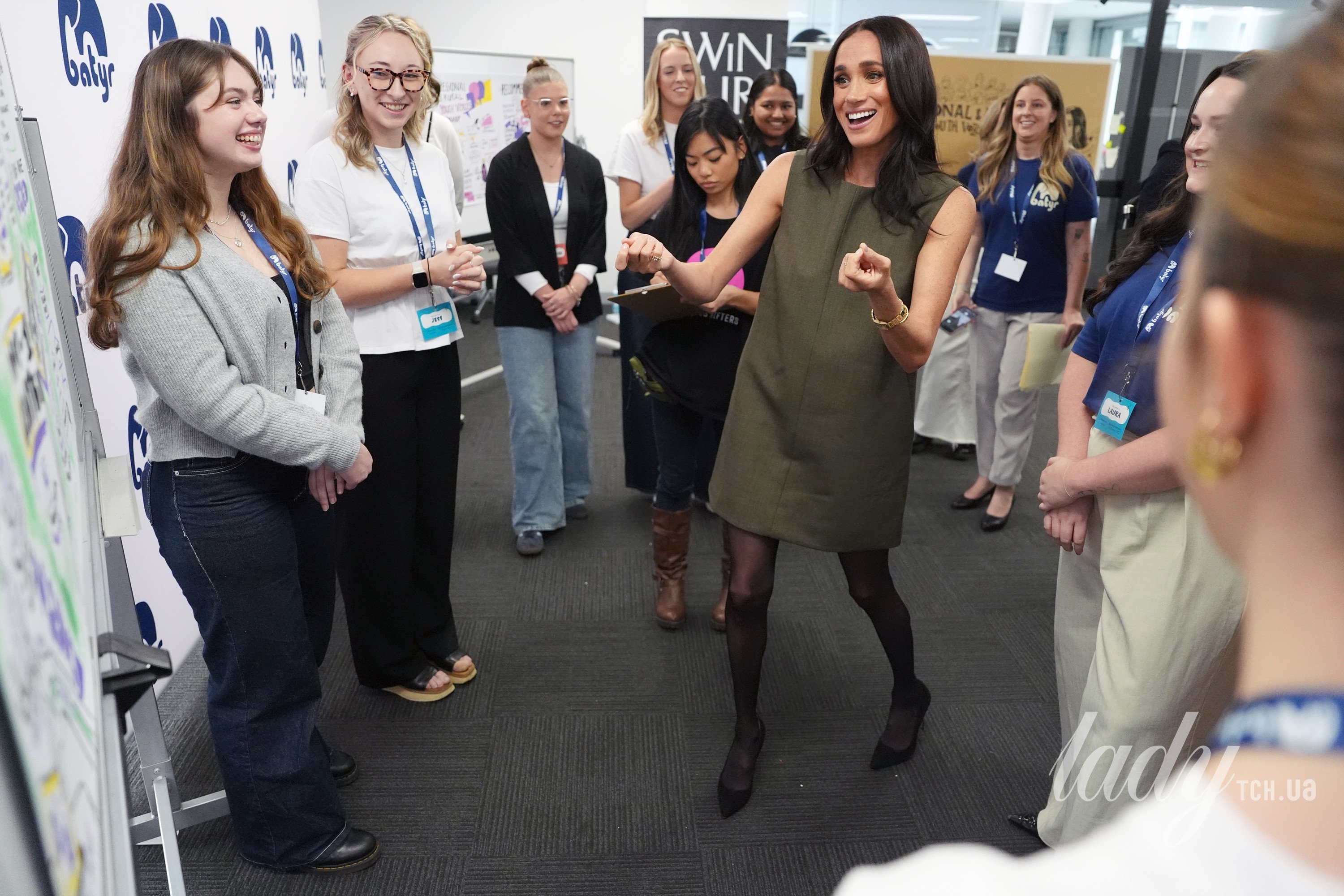 Меган Маркл і принц Гаррі зустрілися з молодими активістами під час візиту до організації Batyr — програми з залучення до питань психічного здоров’я — в Технологічному університеті Суінберна в Готорні.