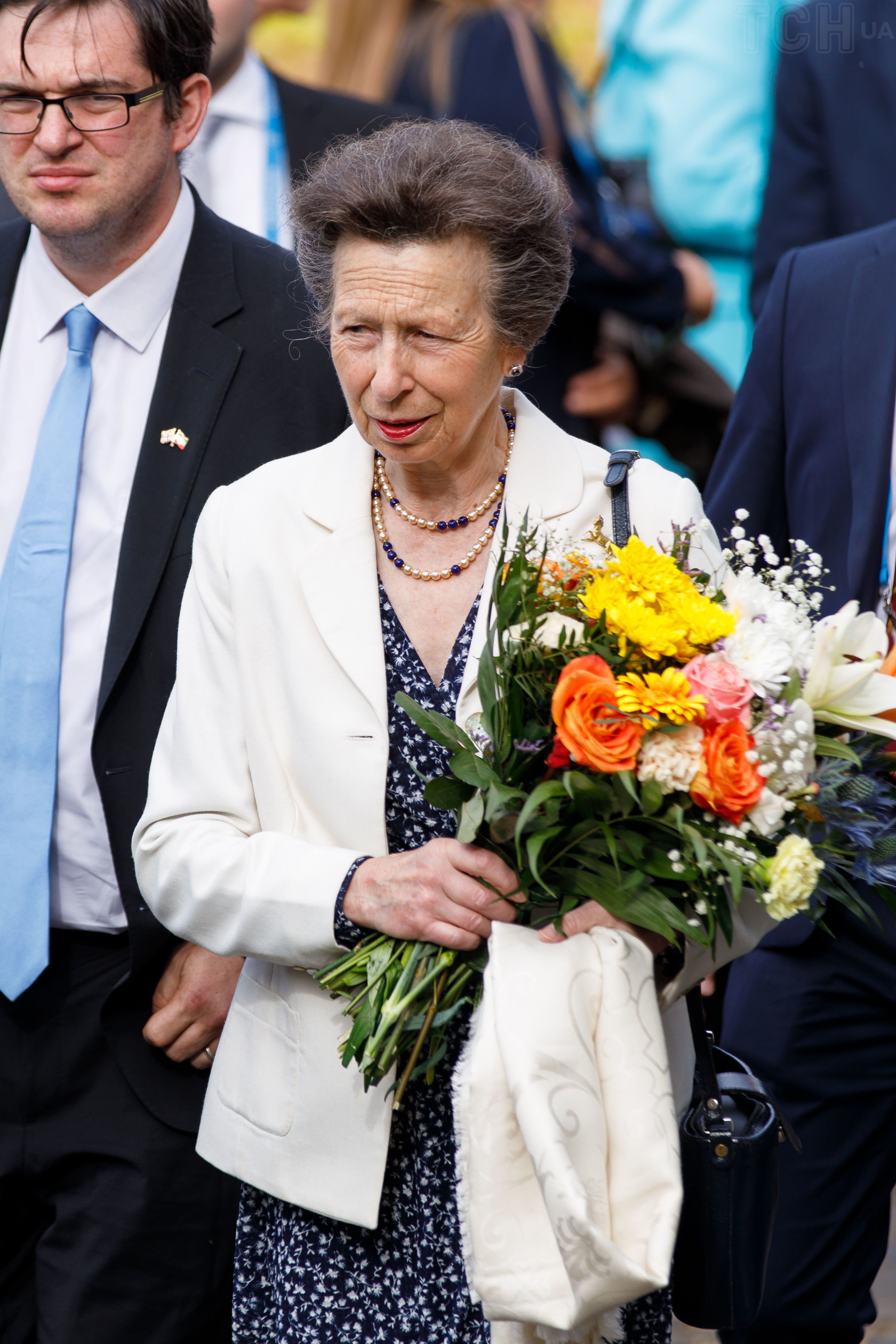 У молочному блейзері та з яскравими губами: дочка королеви Єлизавети II приїхала на фестиваль