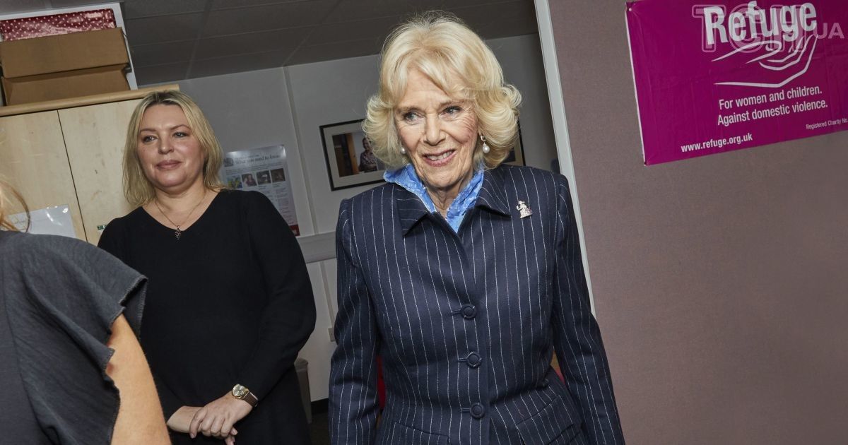 У смугастому костюмі та з новим відтінком волосся: королева Камілла відвідала центр для жінок