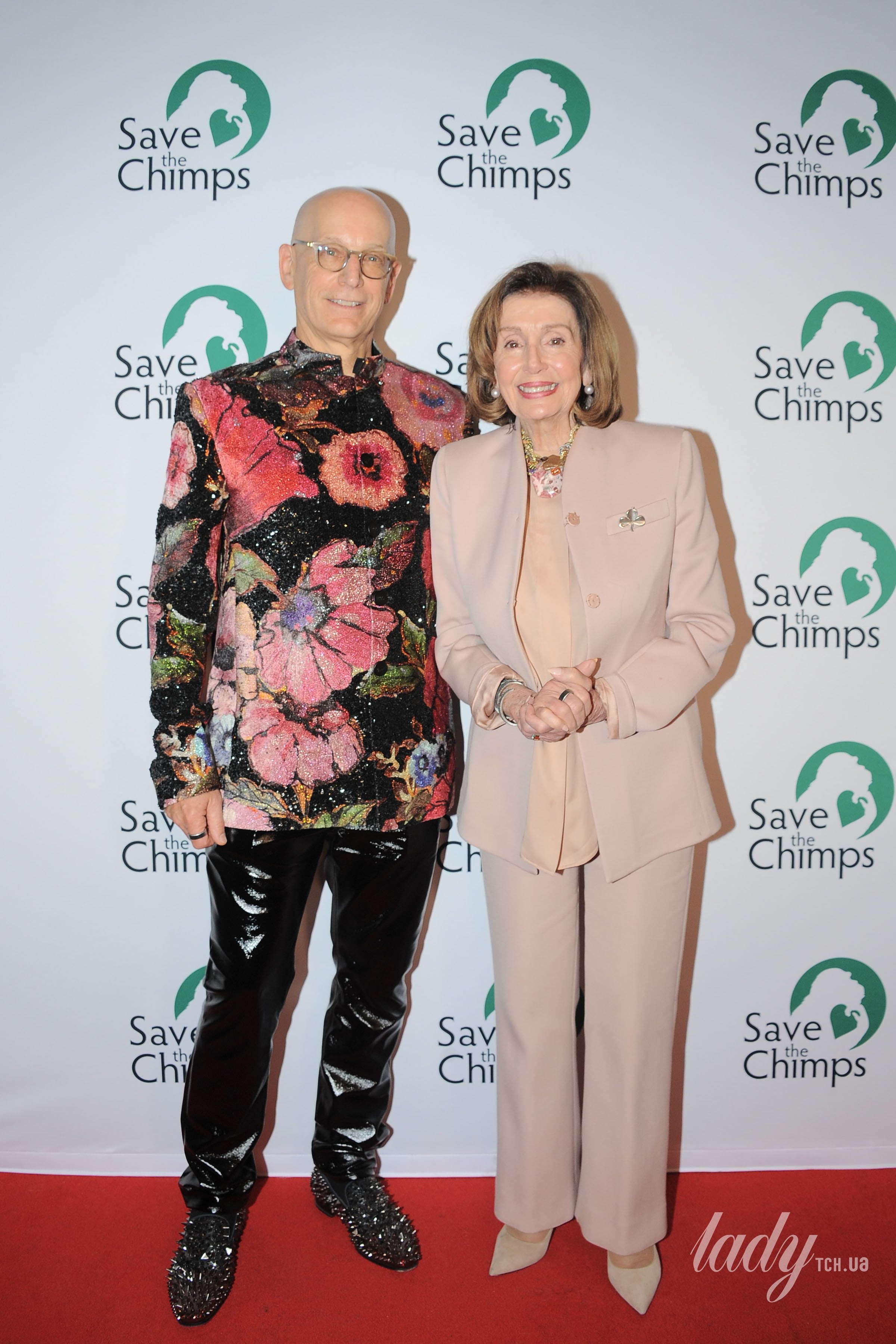 Колишня спікерка Палати представників США Ненсі Пелосі відвідала галаконцерт з нагоди 25-ї річниці організації «Врятуймо шимпанзе» у Нью-Йорку. На світлині разом із нею позував американський архітектор і філантроп Джон Страйкер.