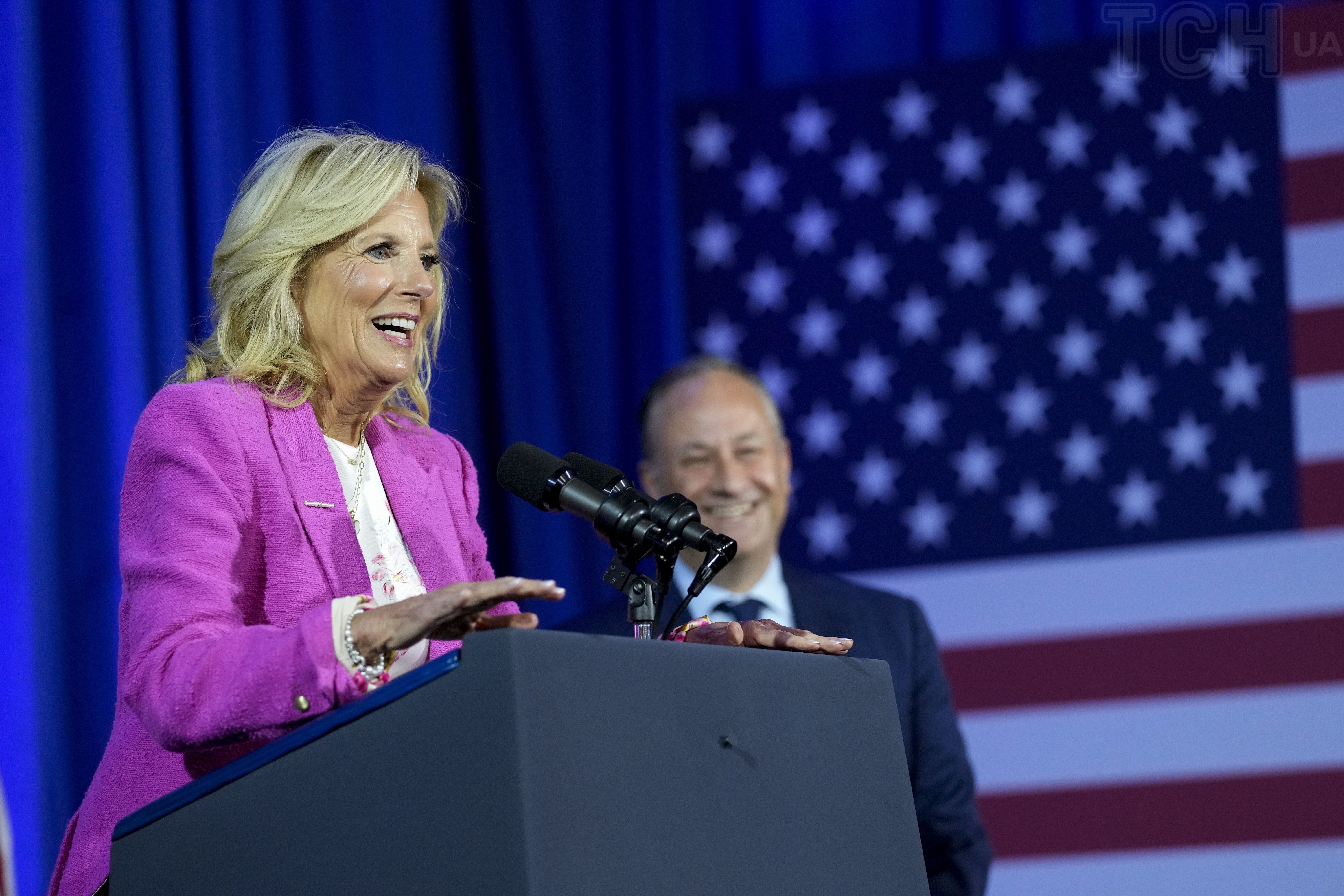 У рожевому жакеті та атласній сукні: елегантна Джилл Байден виступила на заході