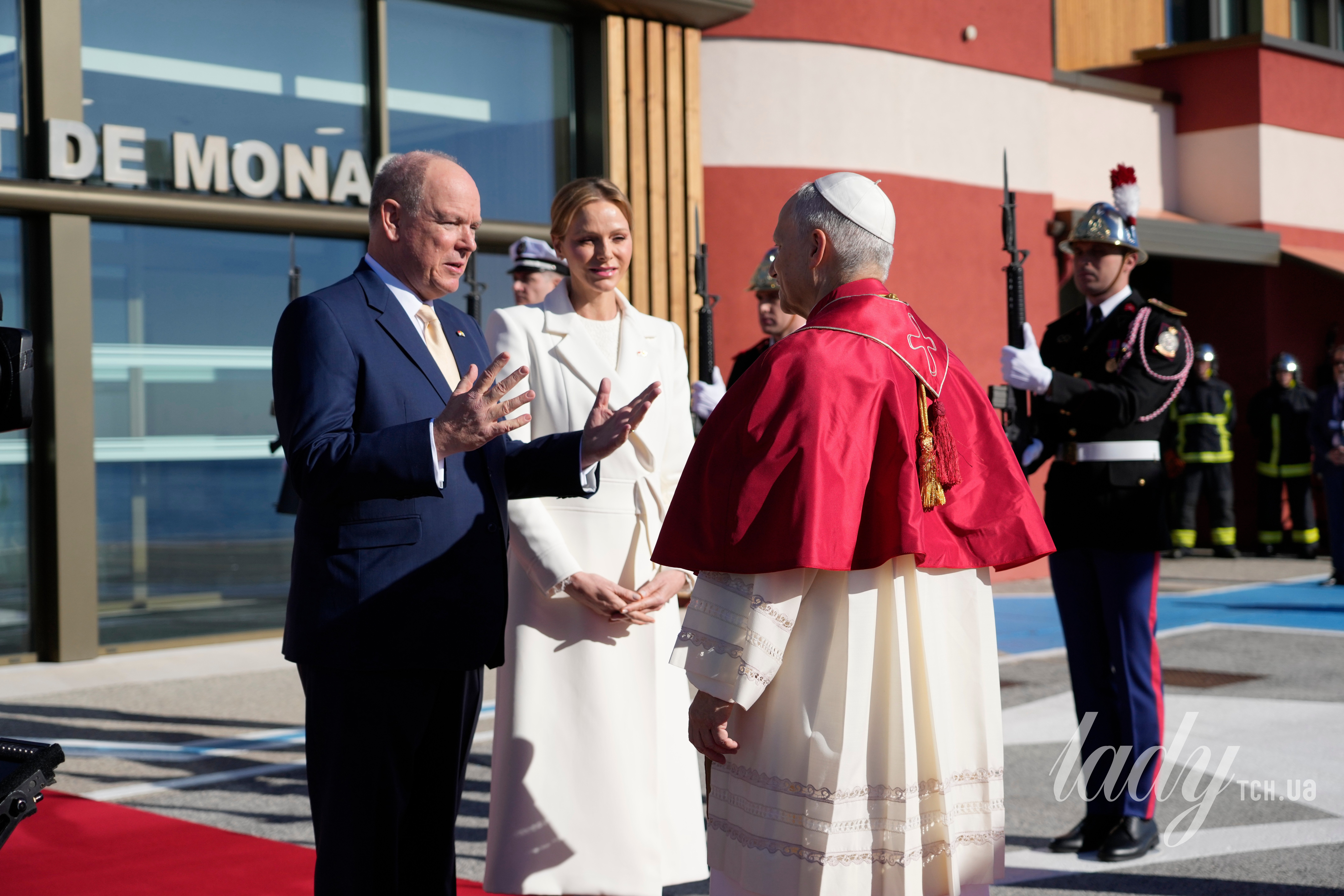 Княгиня Шарлін, Папа Римський Лев XIV і князь Альбер II / © Associated Press