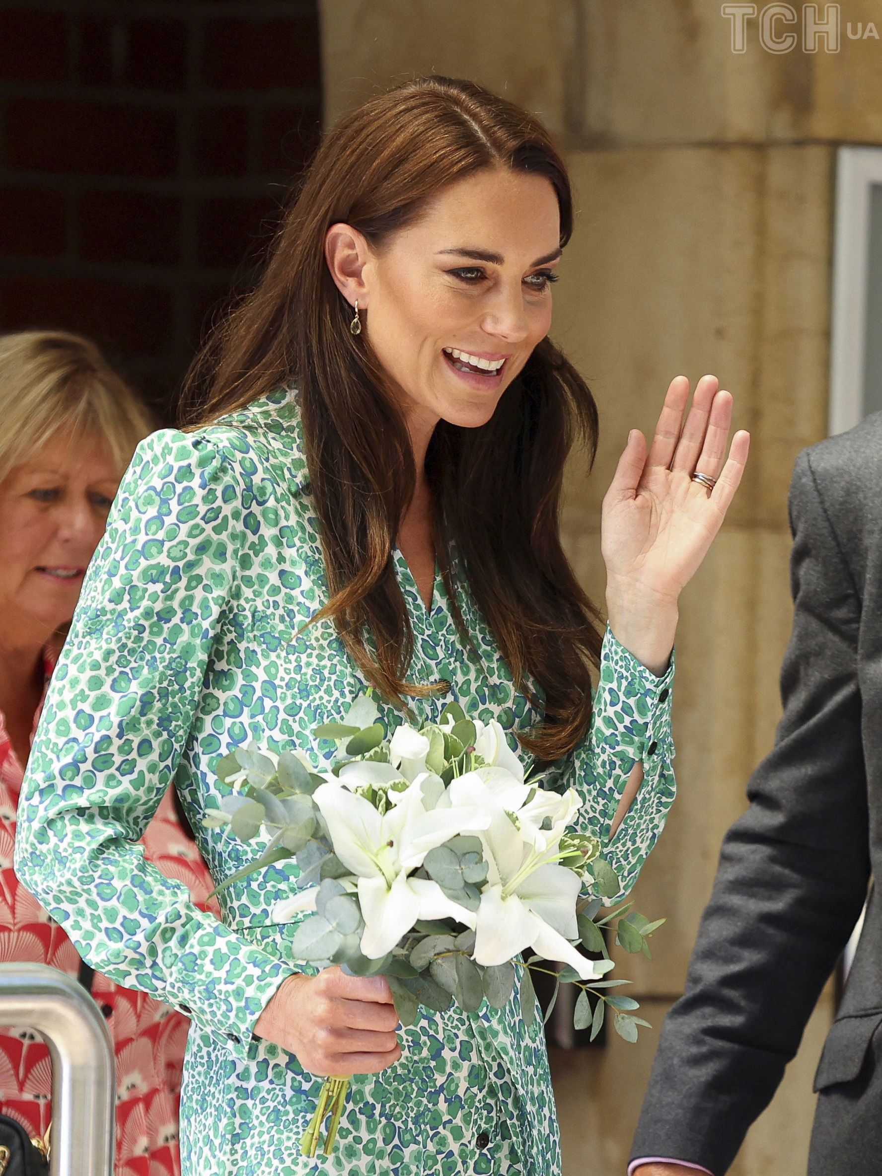 Кетрін люб'язно поговорила з малечею та вже традиційно прийняла букет квітів, який їй вручають під час кожної поїздки.