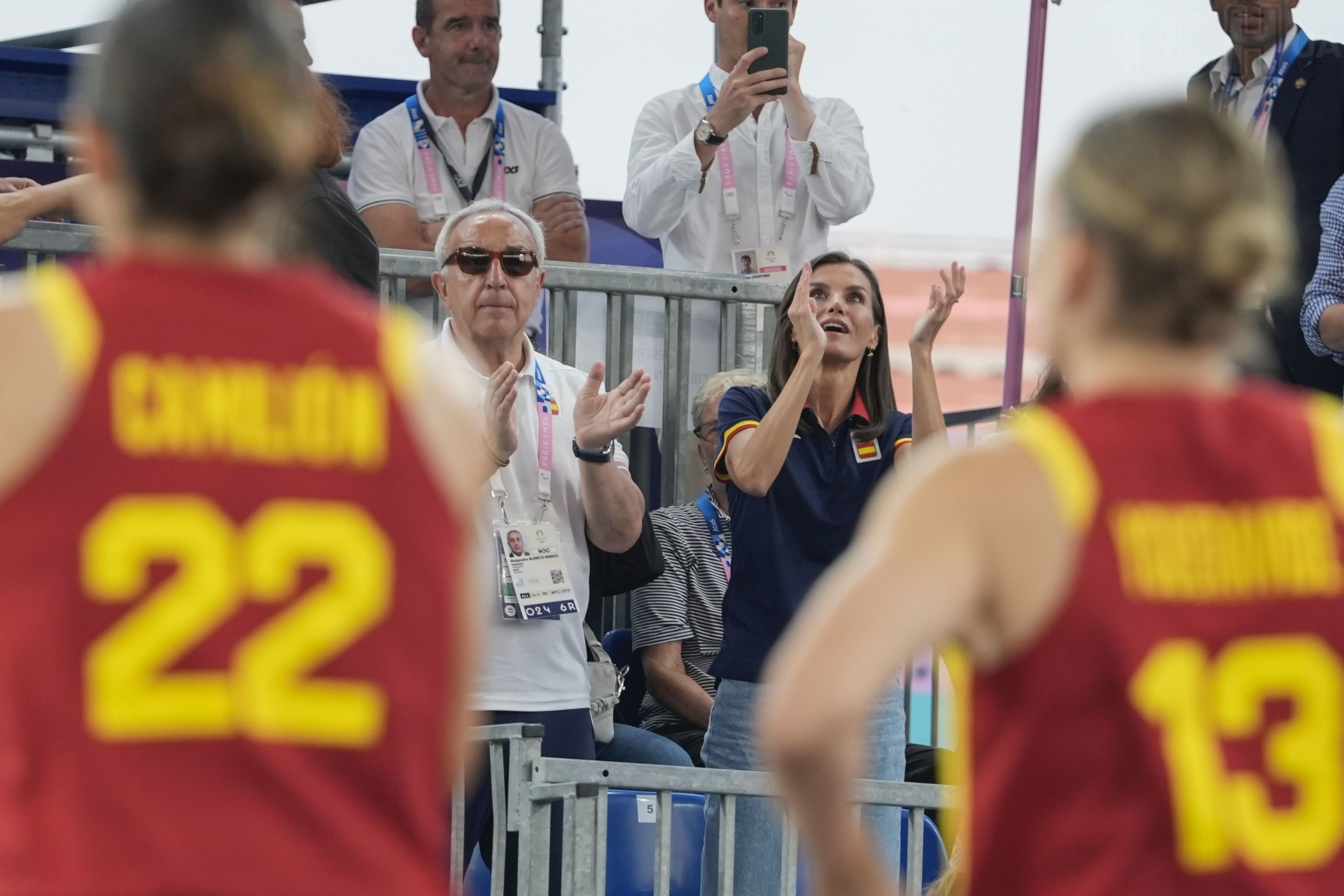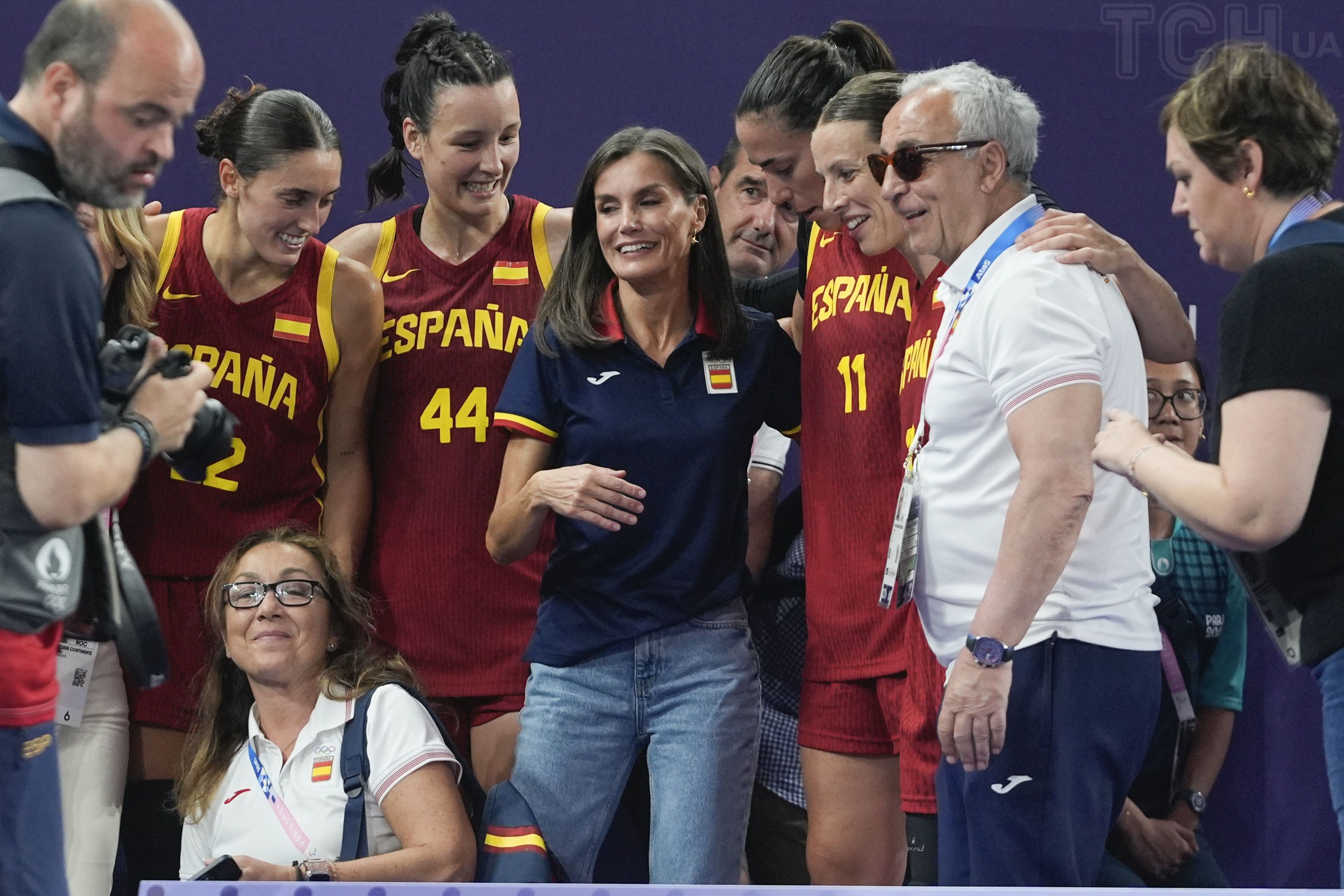 Королева Летиція відвідала баскетбольний матч у Парижі, перш ніж повернутися з доньками до Іспанії.