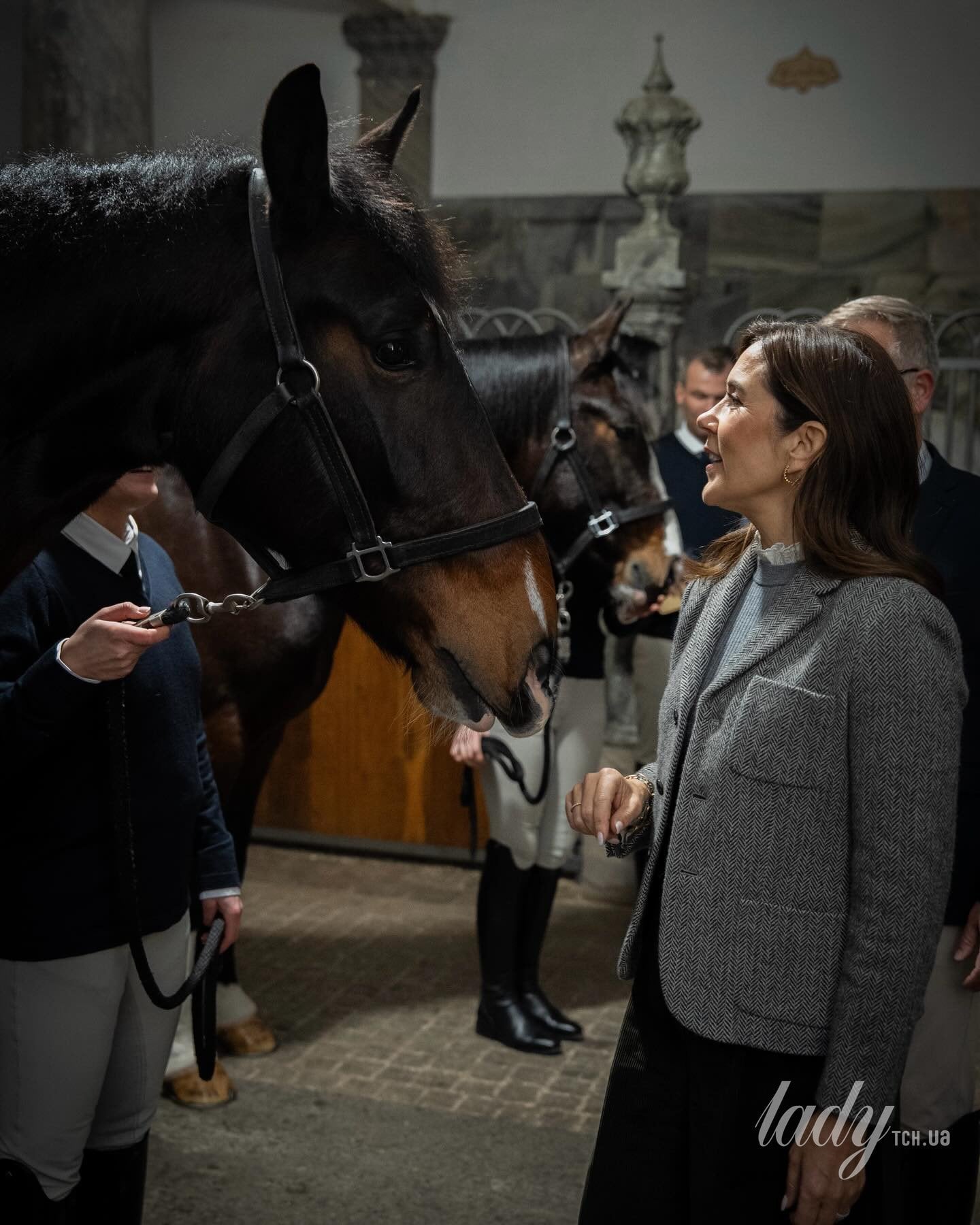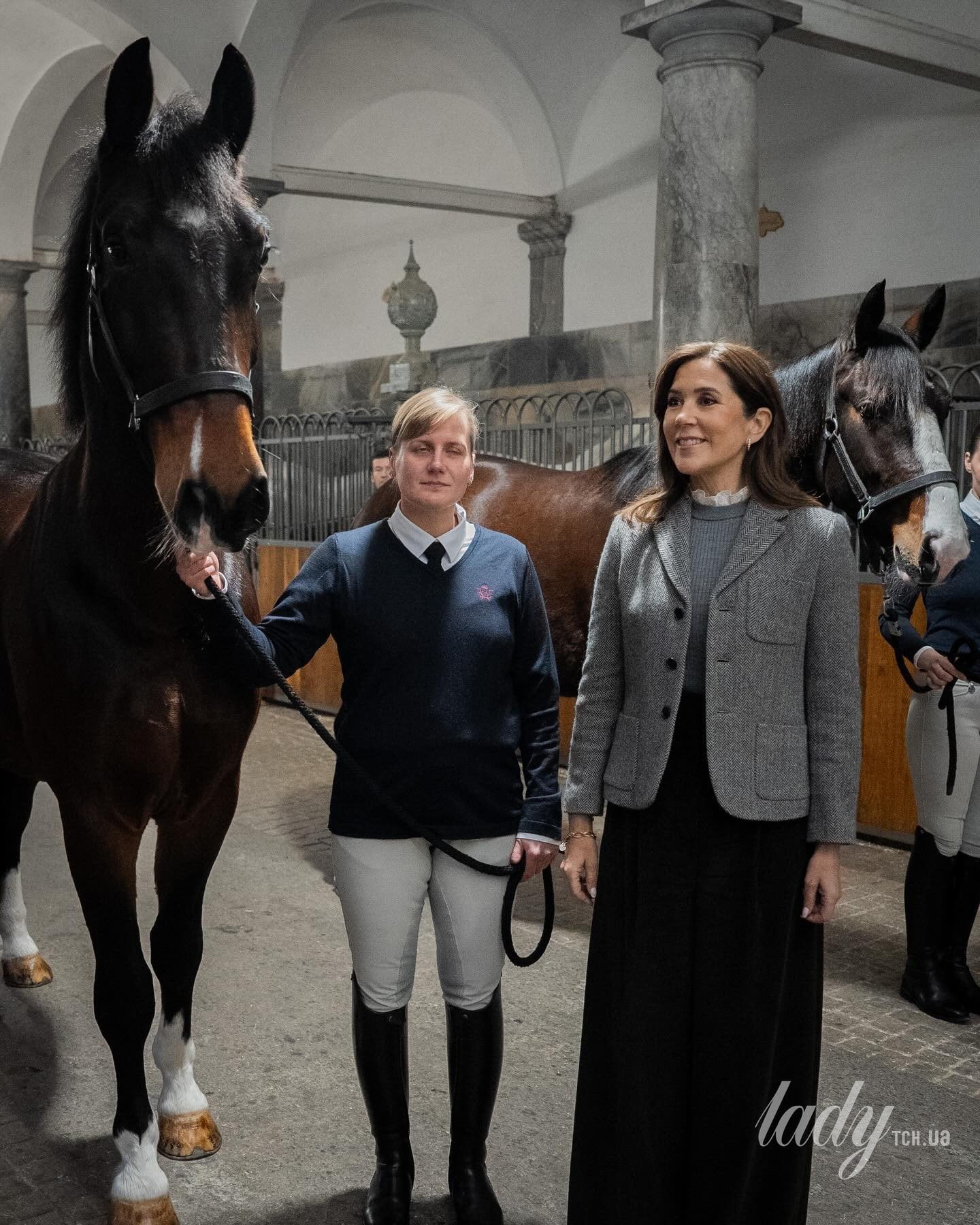 У сірому жакеті та стильних штанях: королева Мері вітала в стайні нових коней