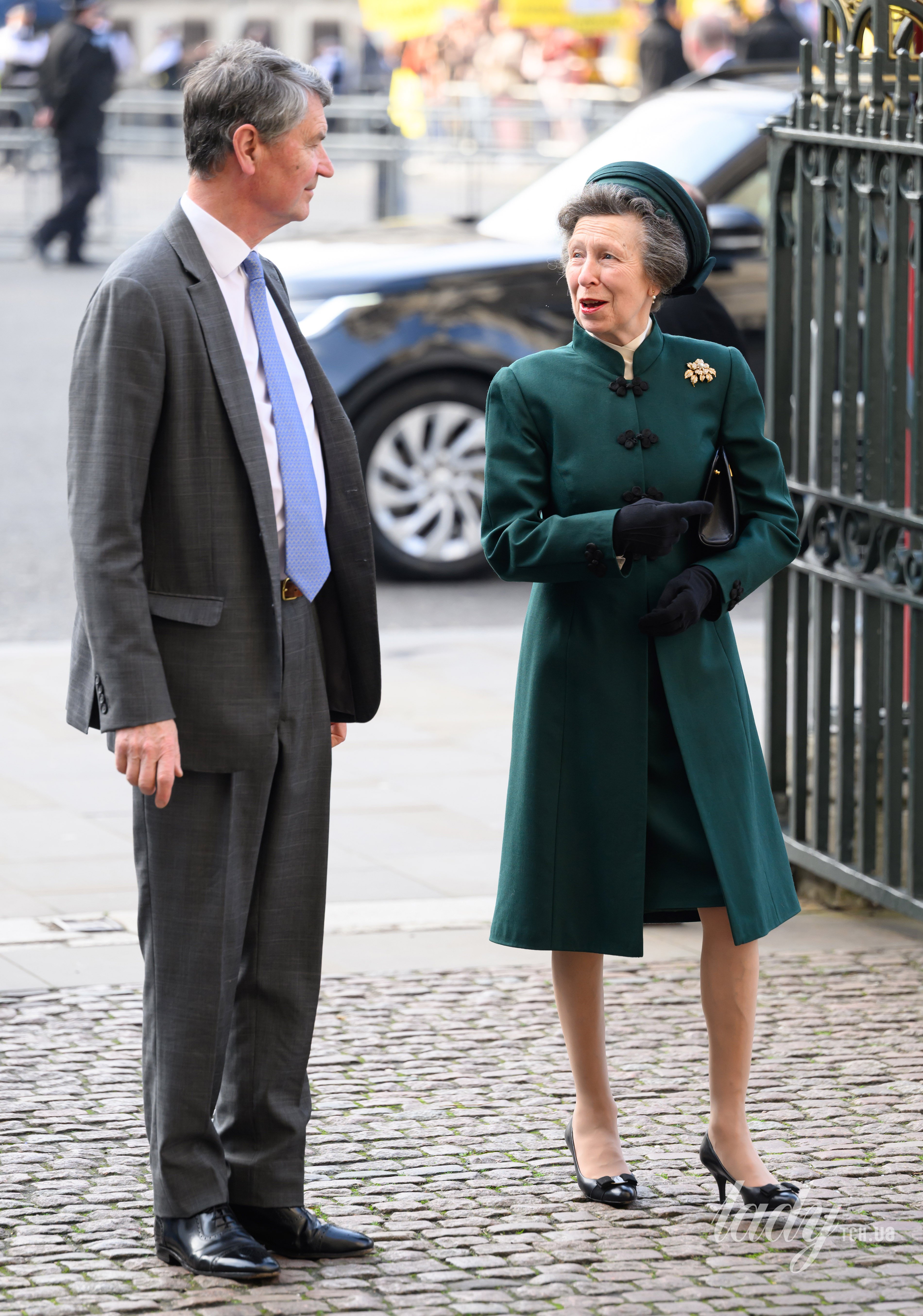 Королівська принцеса тримала під пахвою невелику чорну сумку і була одягнена в рукавички, а взула Анна шкіряні туфлі на підборах, прикрашені бантами. Її супроводжував чоловік віце-адмірал сер Тімоті Лоуренс, одягнений у сірий костюм, білу сорочку та блакитну краватку.