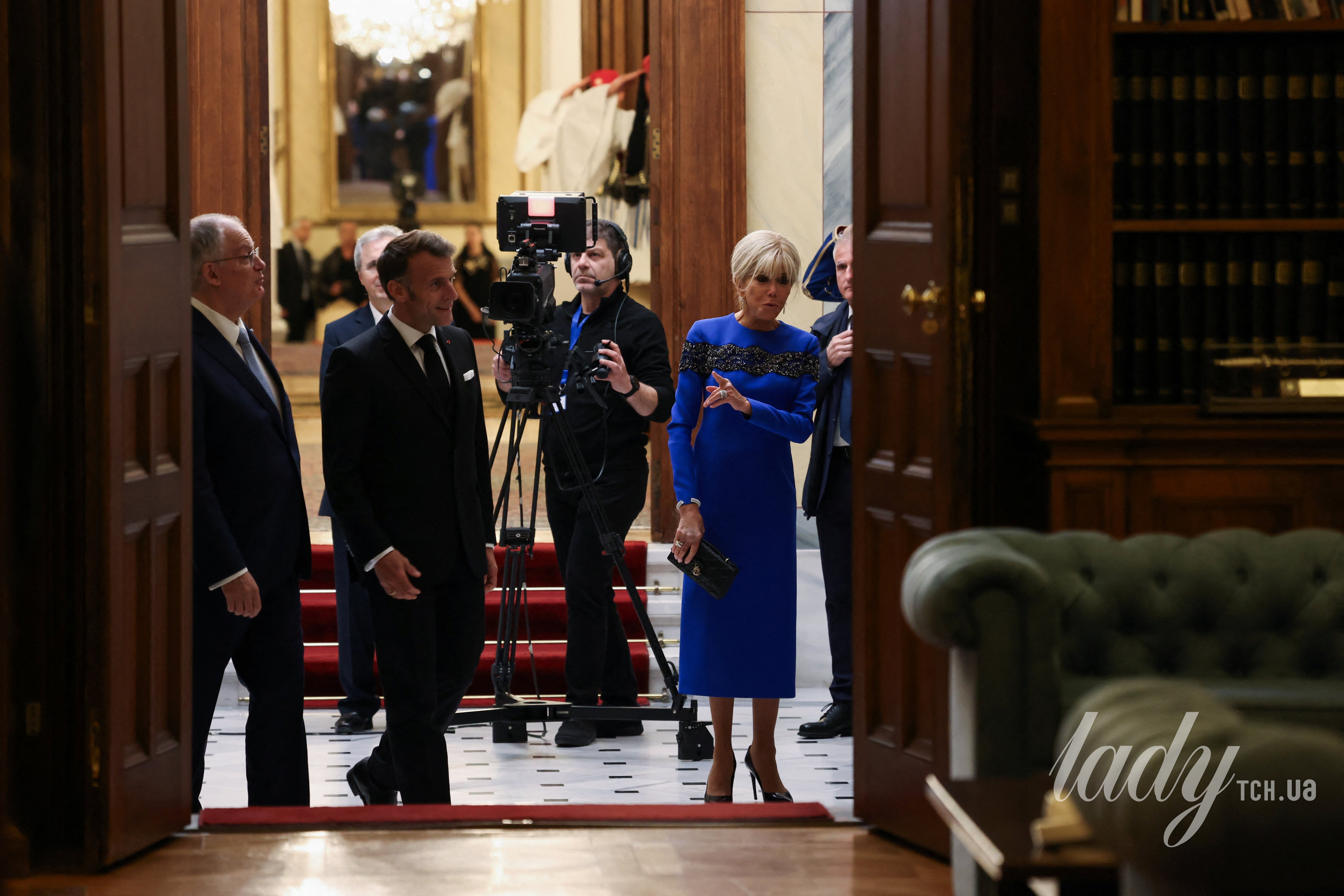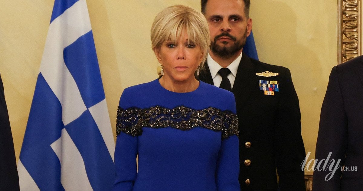 У сукні кольору індиго з вишивкою: красива Бріжит Макрон на державній вечері у Греції