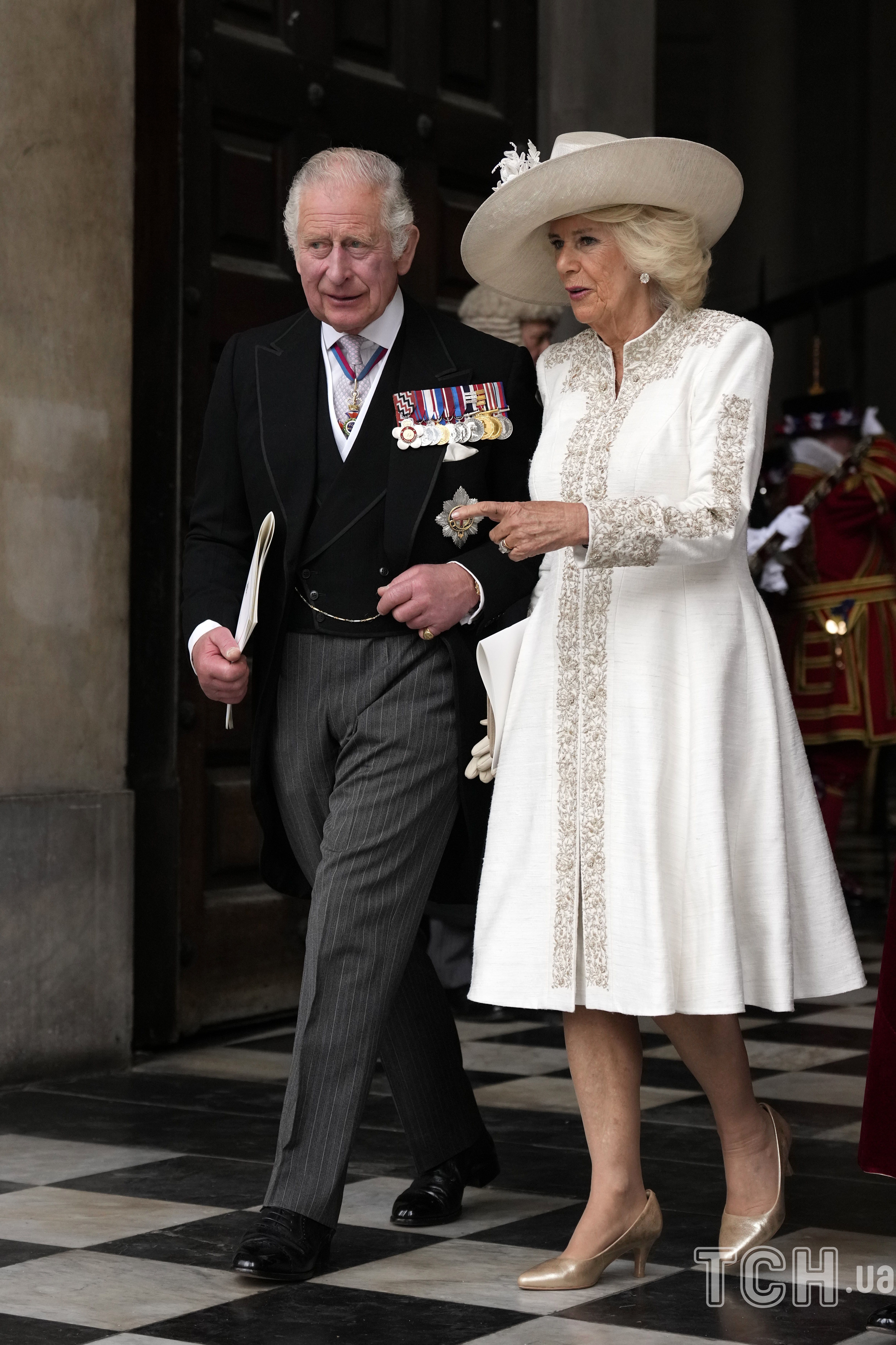 У сукні-пальті з вишивкою та перлинними човниками: дружина принца Чарльза Камілла на урочистій службі