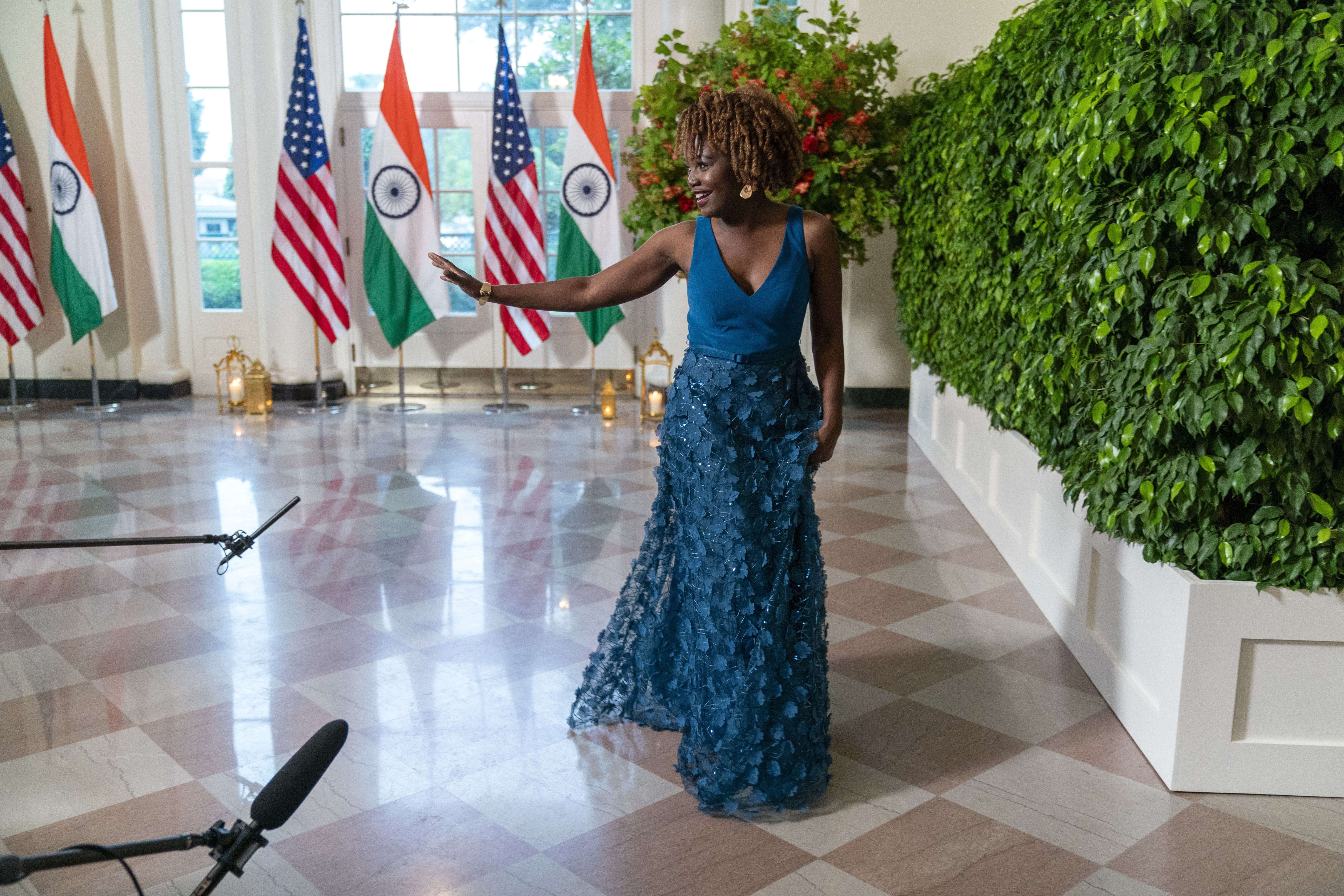 Прессекретарка Білого дому Карін Жан-П’єр відвідала державну вечерю у Білому домі, організовану на честь офіційного візиту прем’єр-міністра Індії Нарендри Моді до Вашингтона.