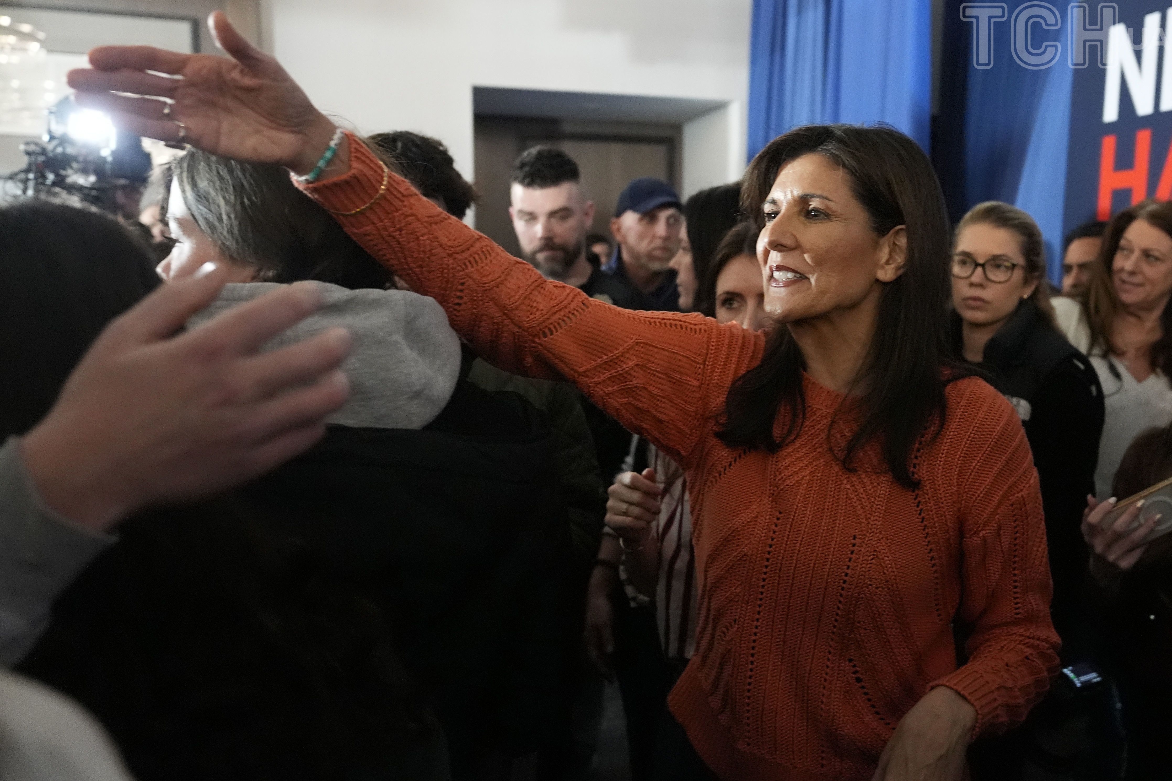 Нагадаємо, на мітингу у Нью-Гемпширі Ніккі Гейлі з'явилася у синій жакардовій квітковій сукні міді з рюшами на рукавах.