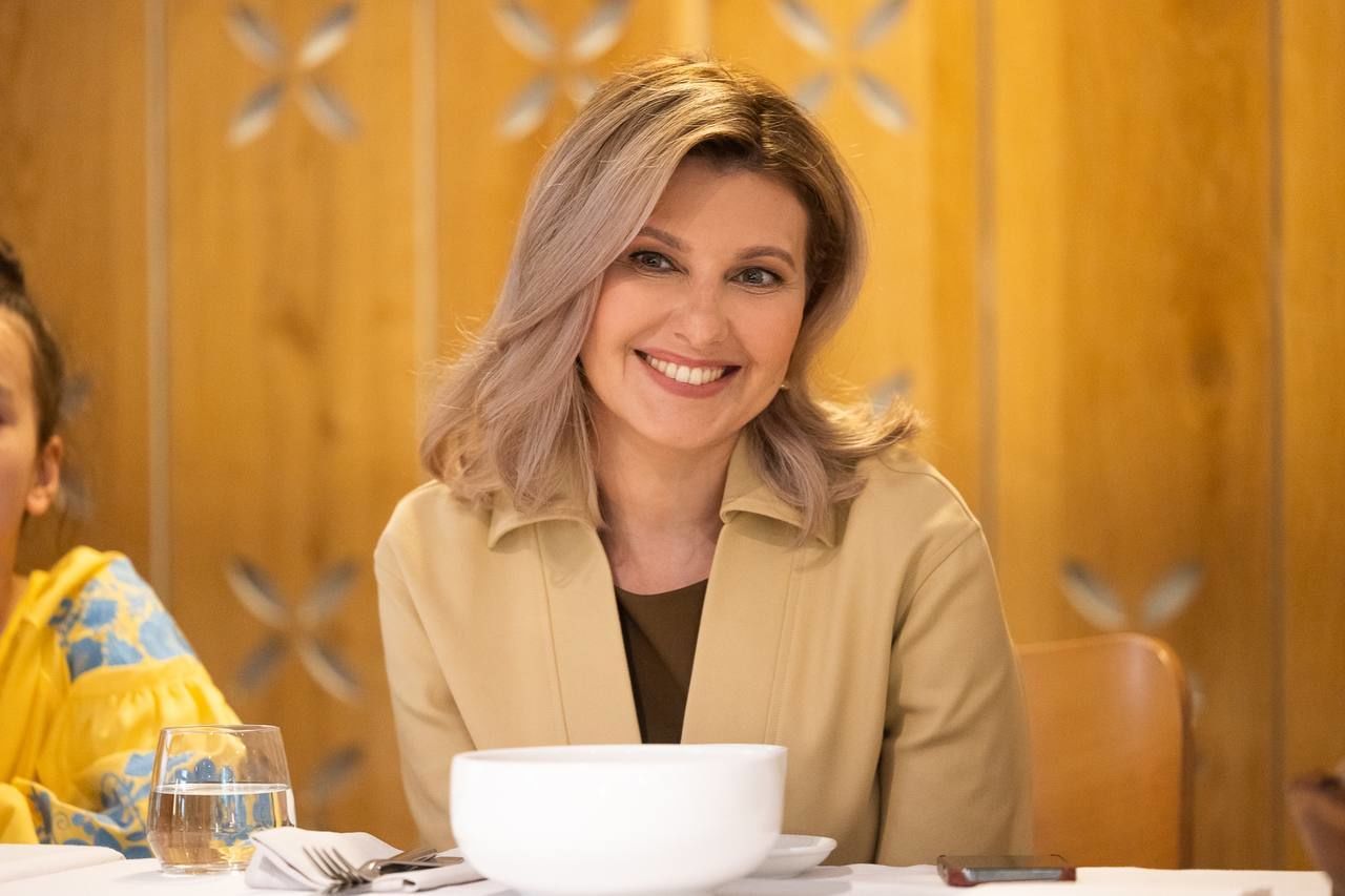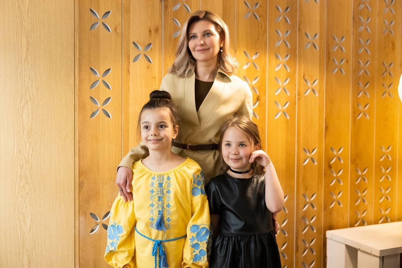 У вбранні з V-подібним вирізом і з крученими сережками: красива Олена Зеленська зустрілася з дітьми-героями