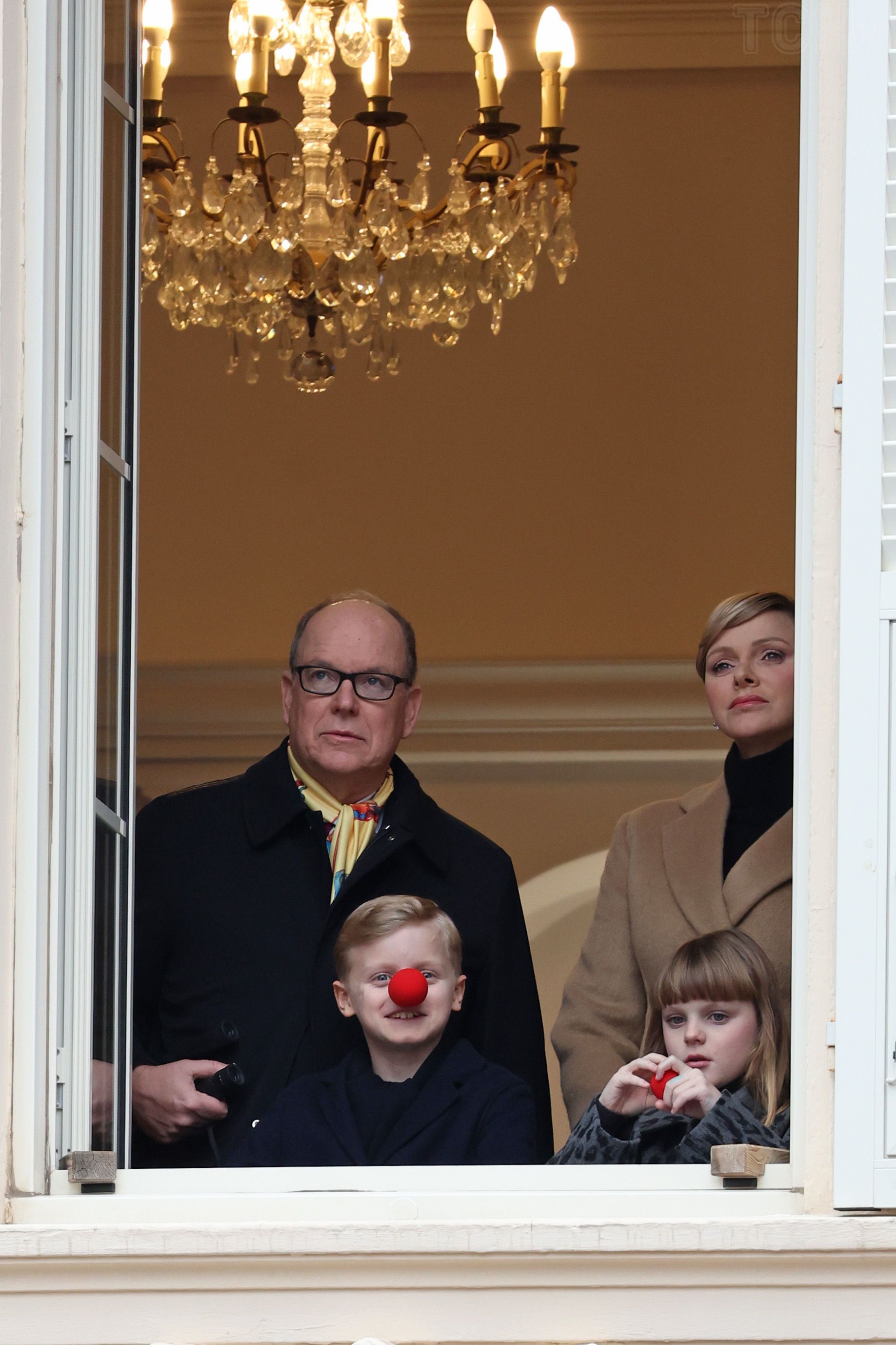Позируючи на балконі, діти одягли кумедні червоні носи. Особливо ця ідея, схоже, прийшла до смаку принцу Жаку.