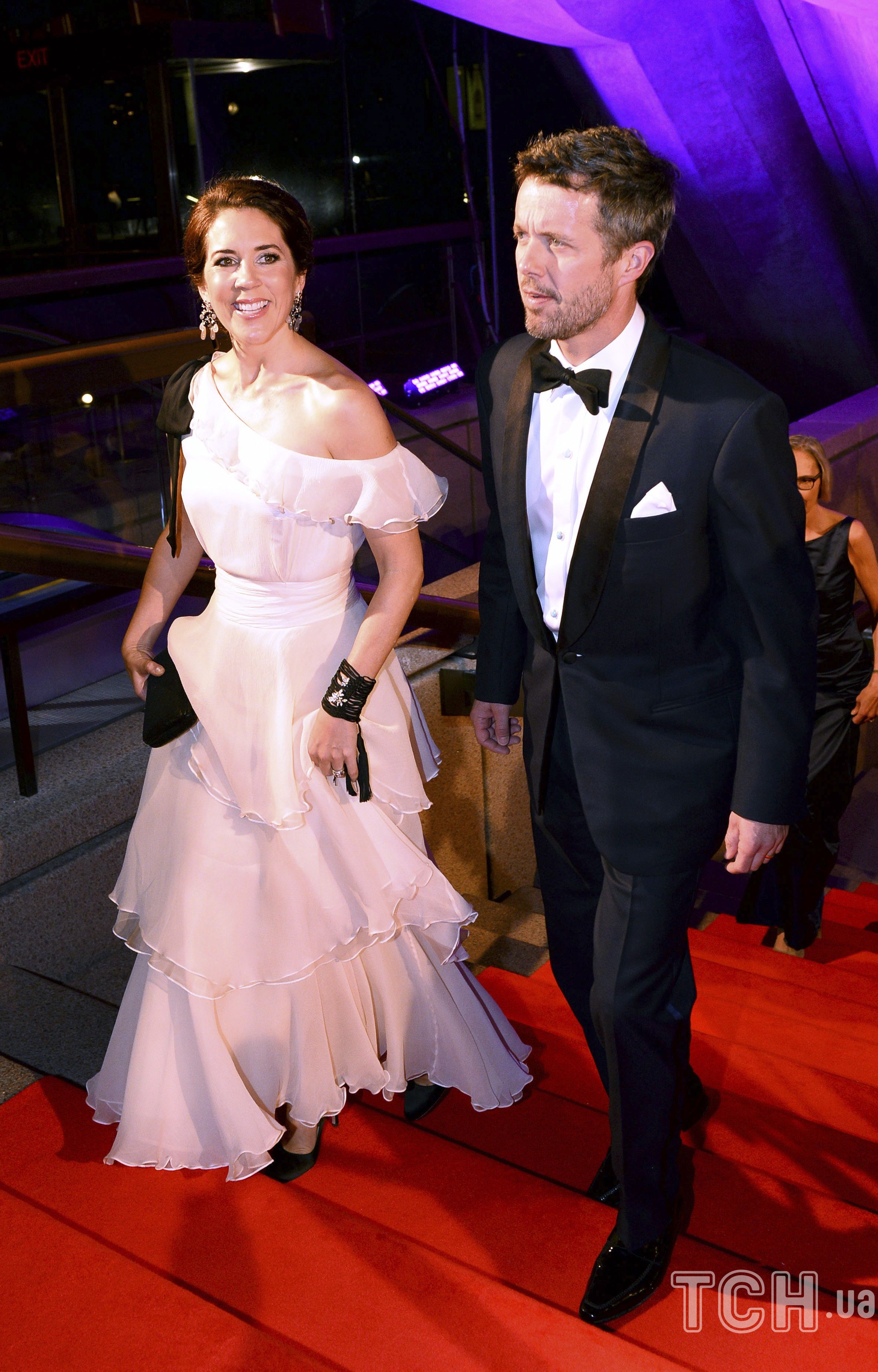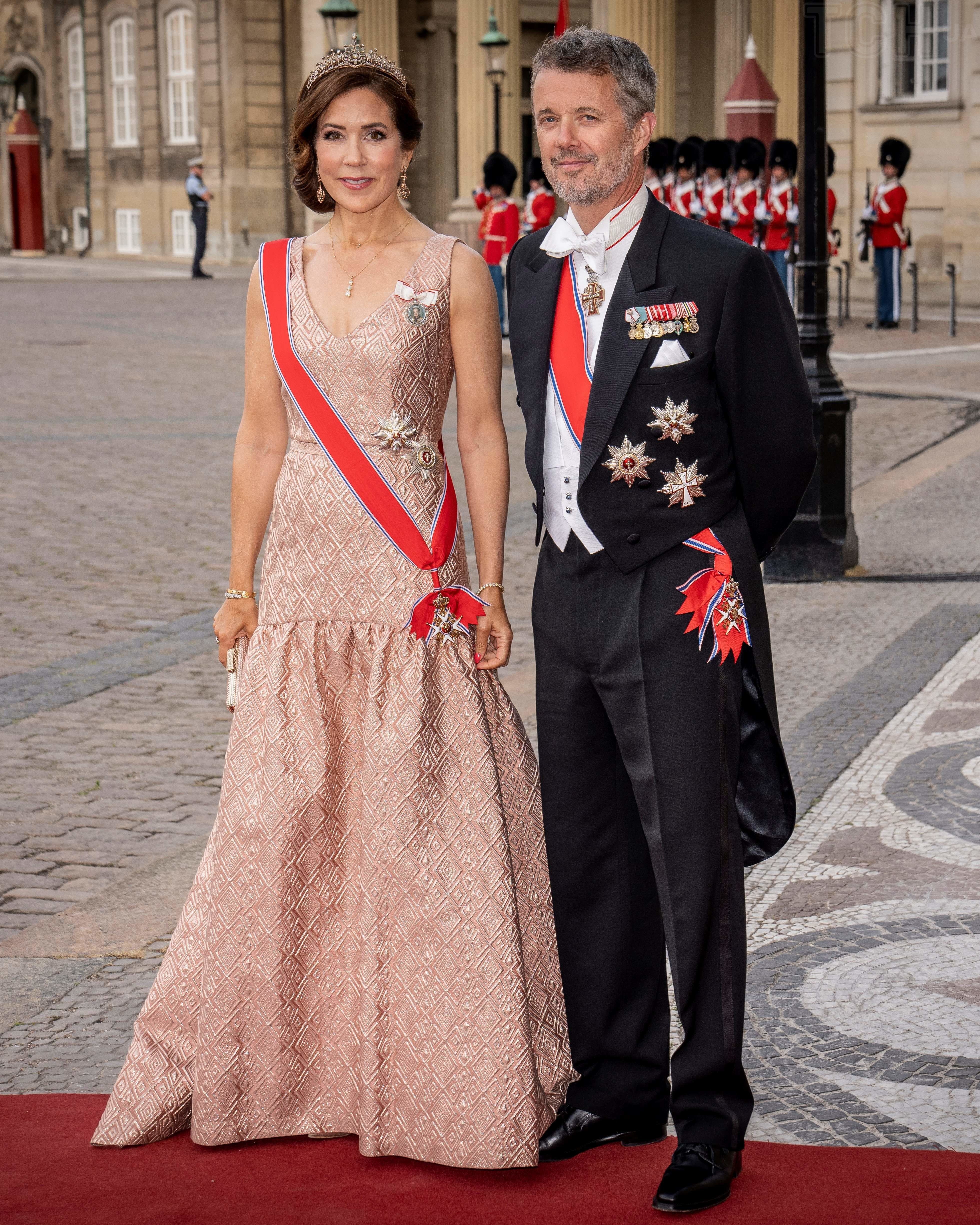 Пара відвідала вечерю в розкішних вечірніх образах та коштовностях. Зокрема Фредерік одягнув чорний костюм, білу сорочку та краватку-метелика, а також доповнив свій образ орденами, медалями та стрічкою.