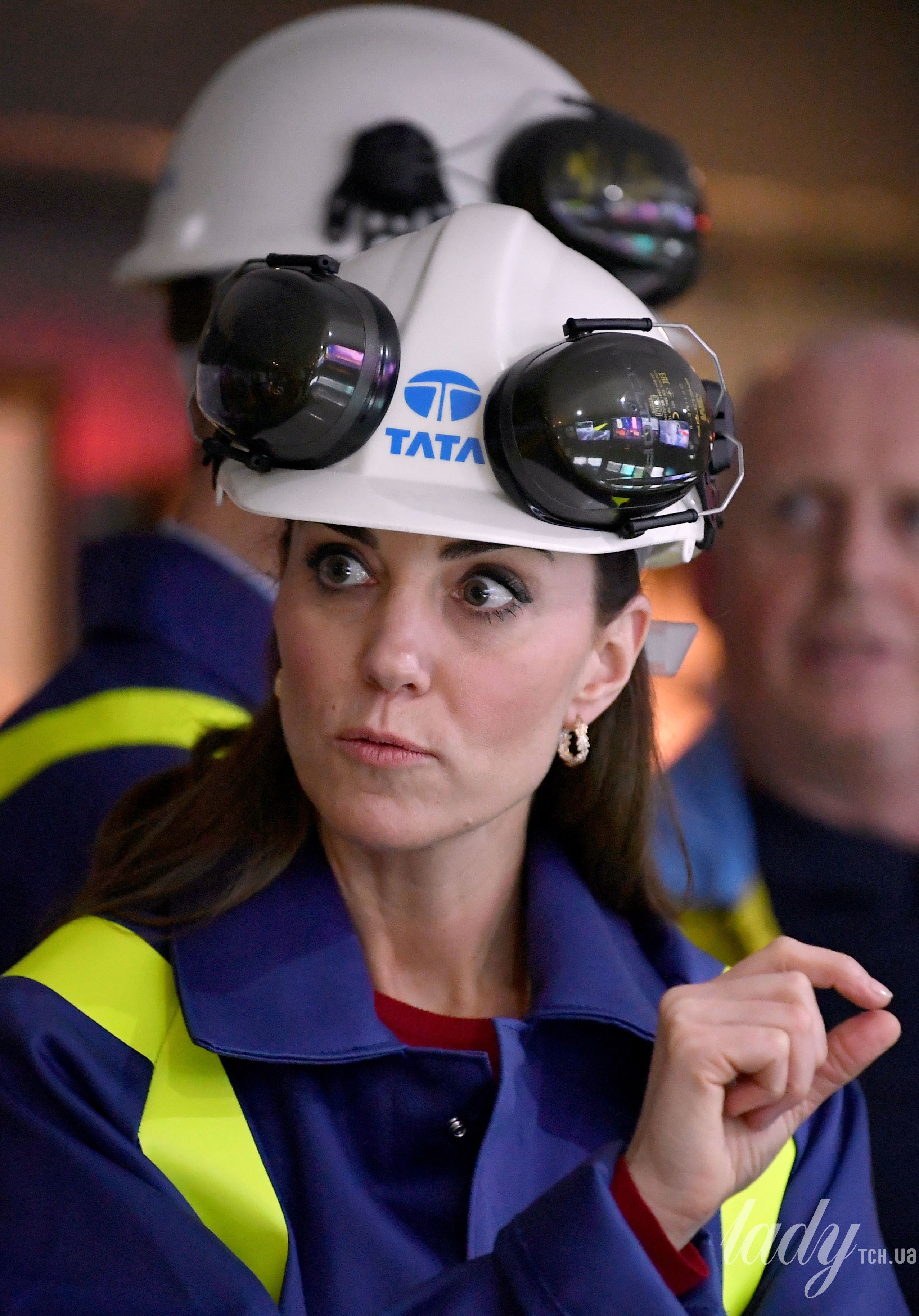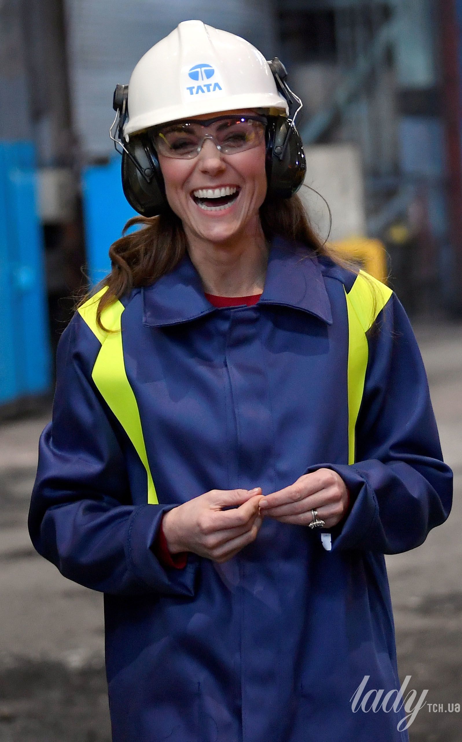 Але під час відвідування заводу Кейт довелося одягатися ще й у спеціальний захисний костюм і шолом з навушниками і окулярами. Але навіть у цьому аутфіті герцогиня мала чудовий і трохи кумедний вигляд.