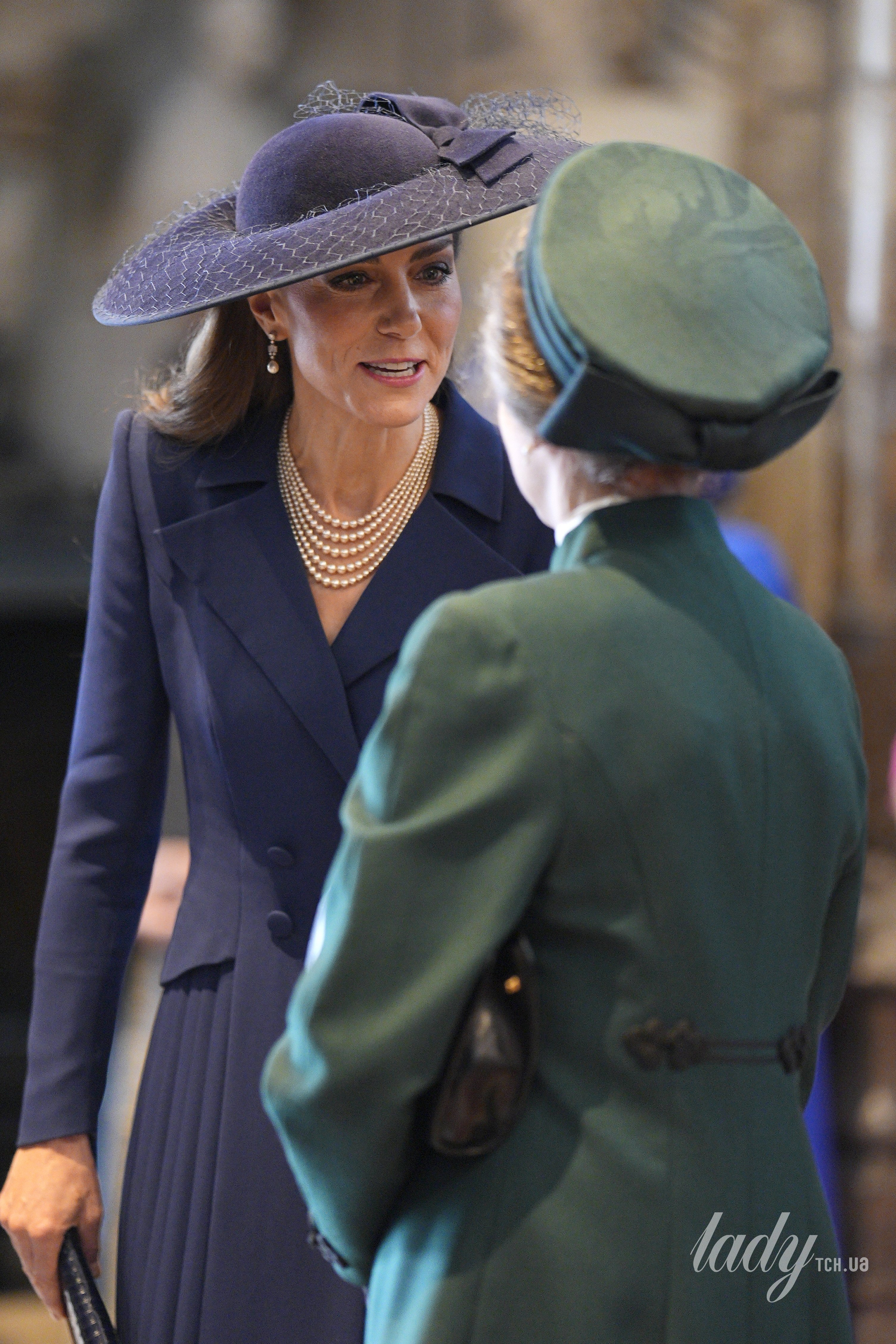 І Кейт, і принцеса Анна доповнили свої елегантні образи головними уборами, які б зробили таке привітання непрактичним. Капелюх принцеси Уельської був особливо крислатим і ефектним, тому, хоча принц Вільям і зміг поцілувати свою тітку в щоку, коли настав час Кейт привітатися, проблема з капелюхом, як вважають, стала очевидною причиною, через яку вона не зробила цього.