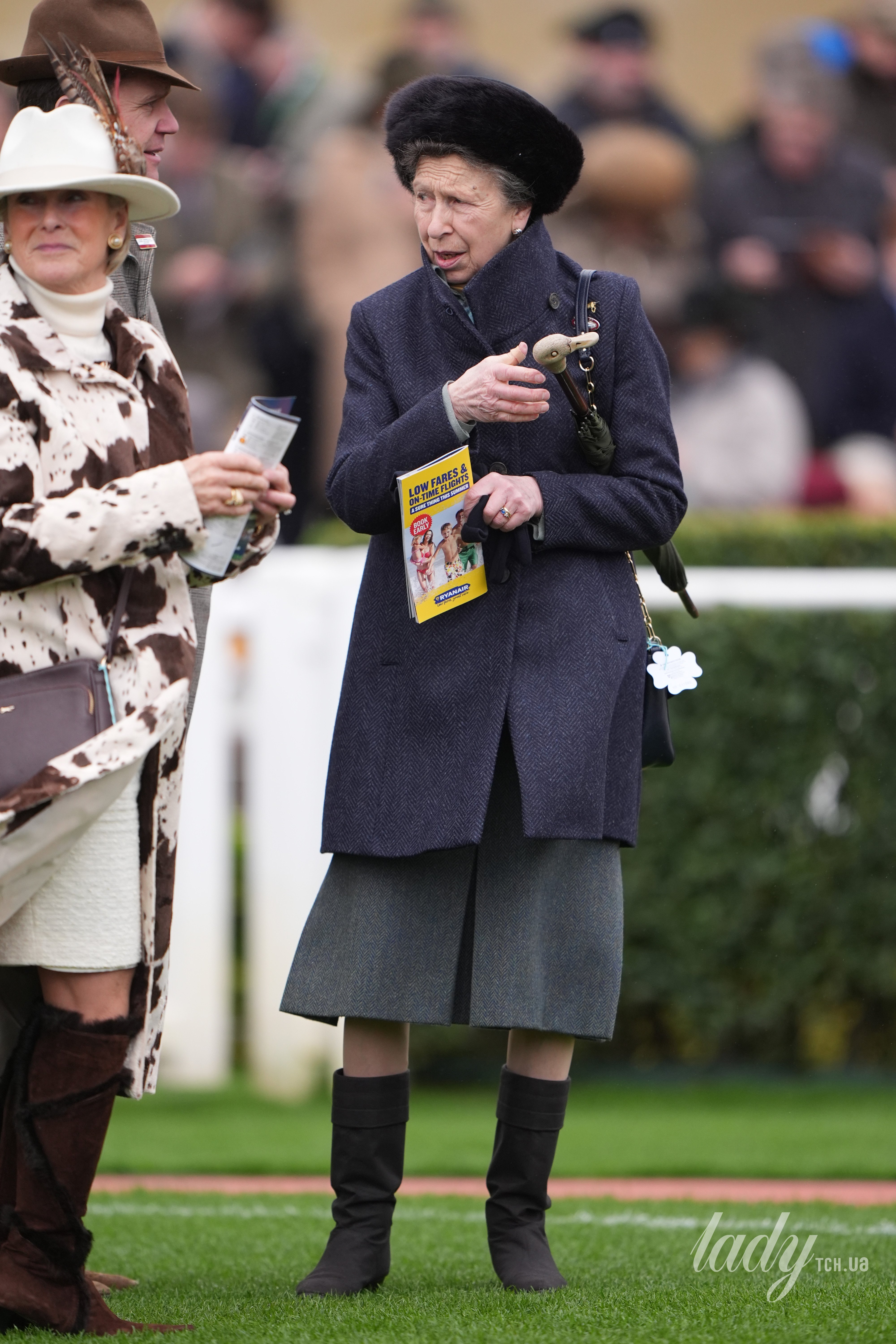 Також третього дня змагань у Челтнемі з’явилася і принцеса Анна. Вона була в пальті та зеленому спідничному костюмі, а також у хутряній шапці, що натякало на те, що погода в Челтнемі прохолодна.