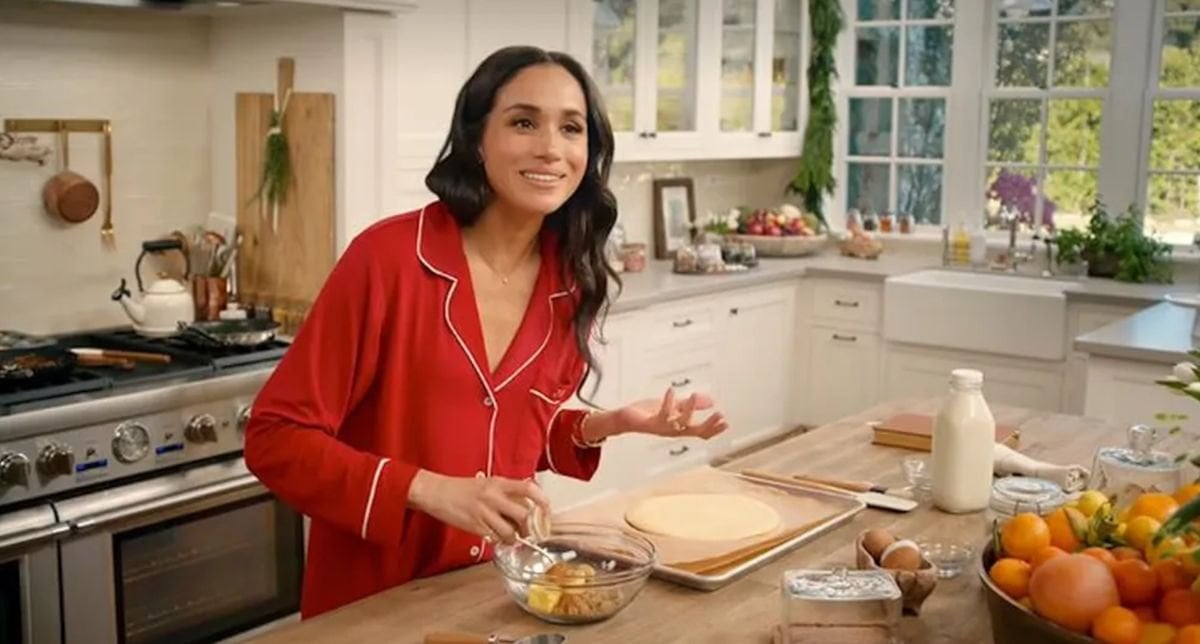 Під час свого нового спеціального випуску Netflix «З любов’ю, Меган: Святкове торжество», прем’єра якого відбулася 3 грудня, герцогиня Сассекська постала в кадрі в червоній святковій піжамі, яка дуже доречно пасує до Різдва.