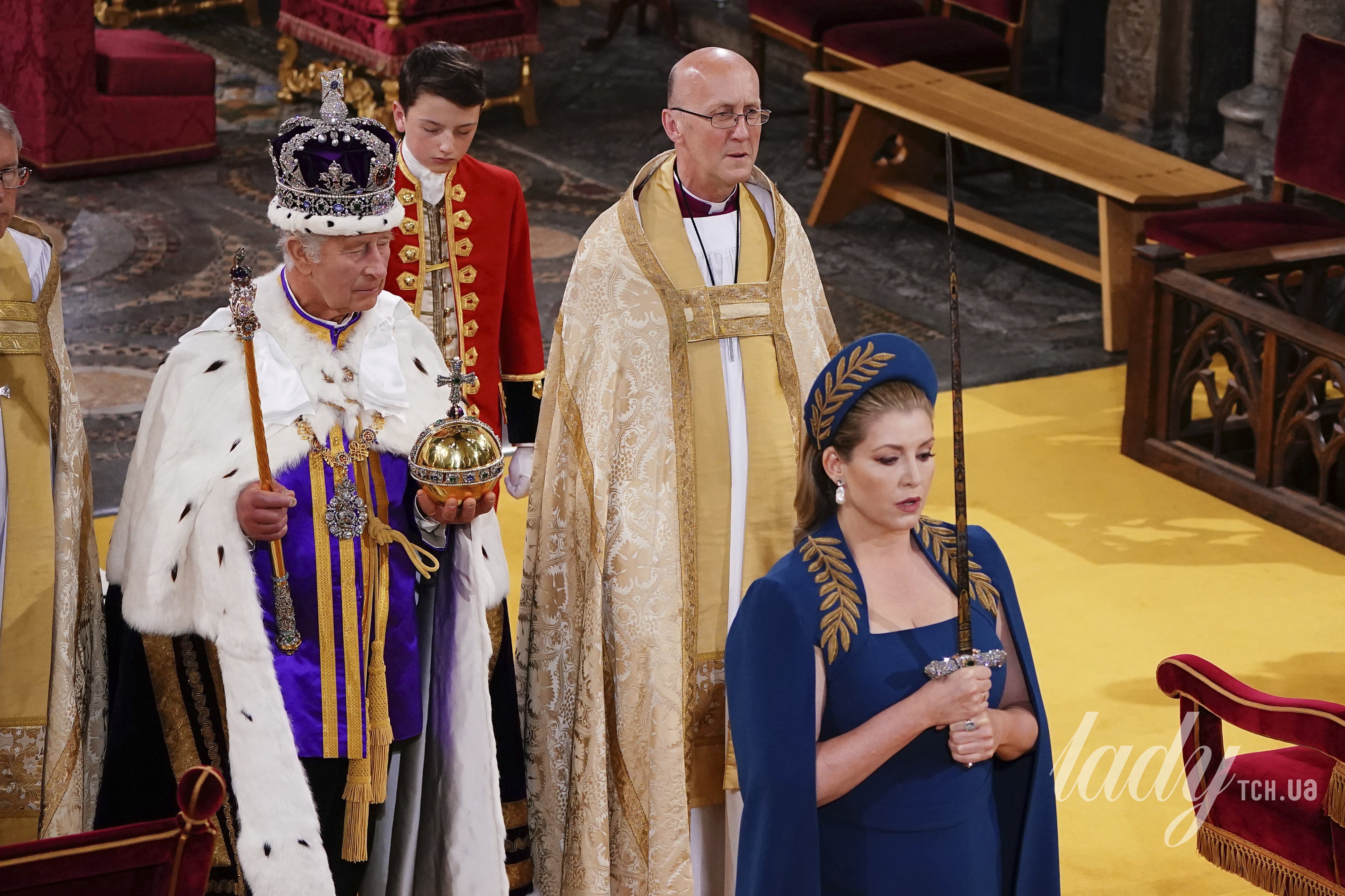 Пенні Мордаунт з'явилася на коронації в бірюзовій сукні і накидці від Safiyaa з ефектним оздобленням із золота і відповідним обідком на голові, і привернула до себе багато уваги в Інтернеті своєю роллю, яка охоплювала тримання восьмифунтового церемоніального меча на протязі більшої частини церемонії, перш ніж вона змінила його на більш легкий Меч Жертовниці, прикрашений дорогоцінним камінням.
