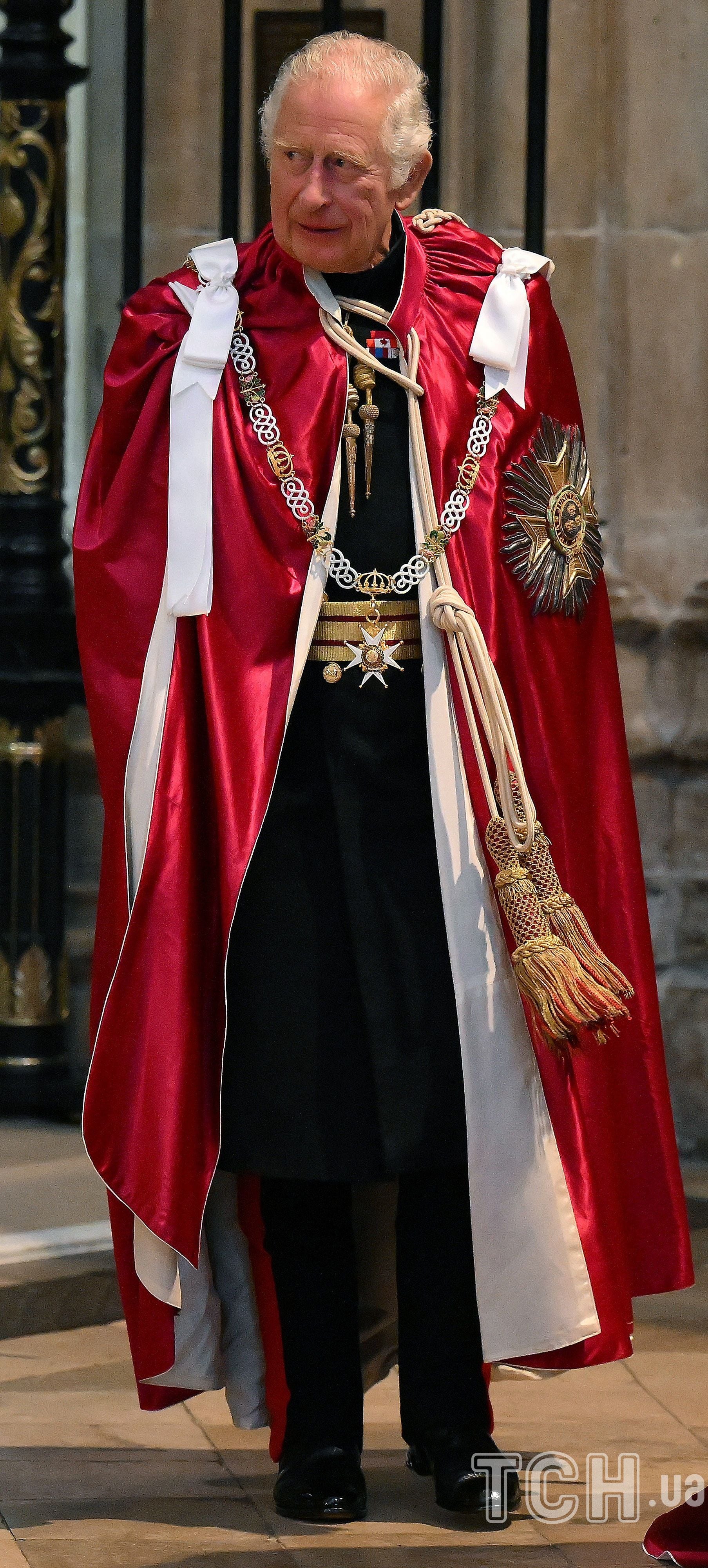 Принц Уельський відвідав службу на честь Ордена Бані у Вестмінстерському абатстві. 73-річний Чарльз був у вишуканій червоній мантії із золотими прикрасами та довгим шлейфом поверх військової форми.