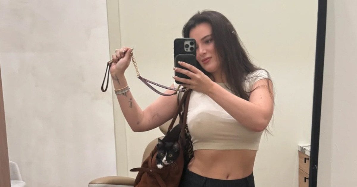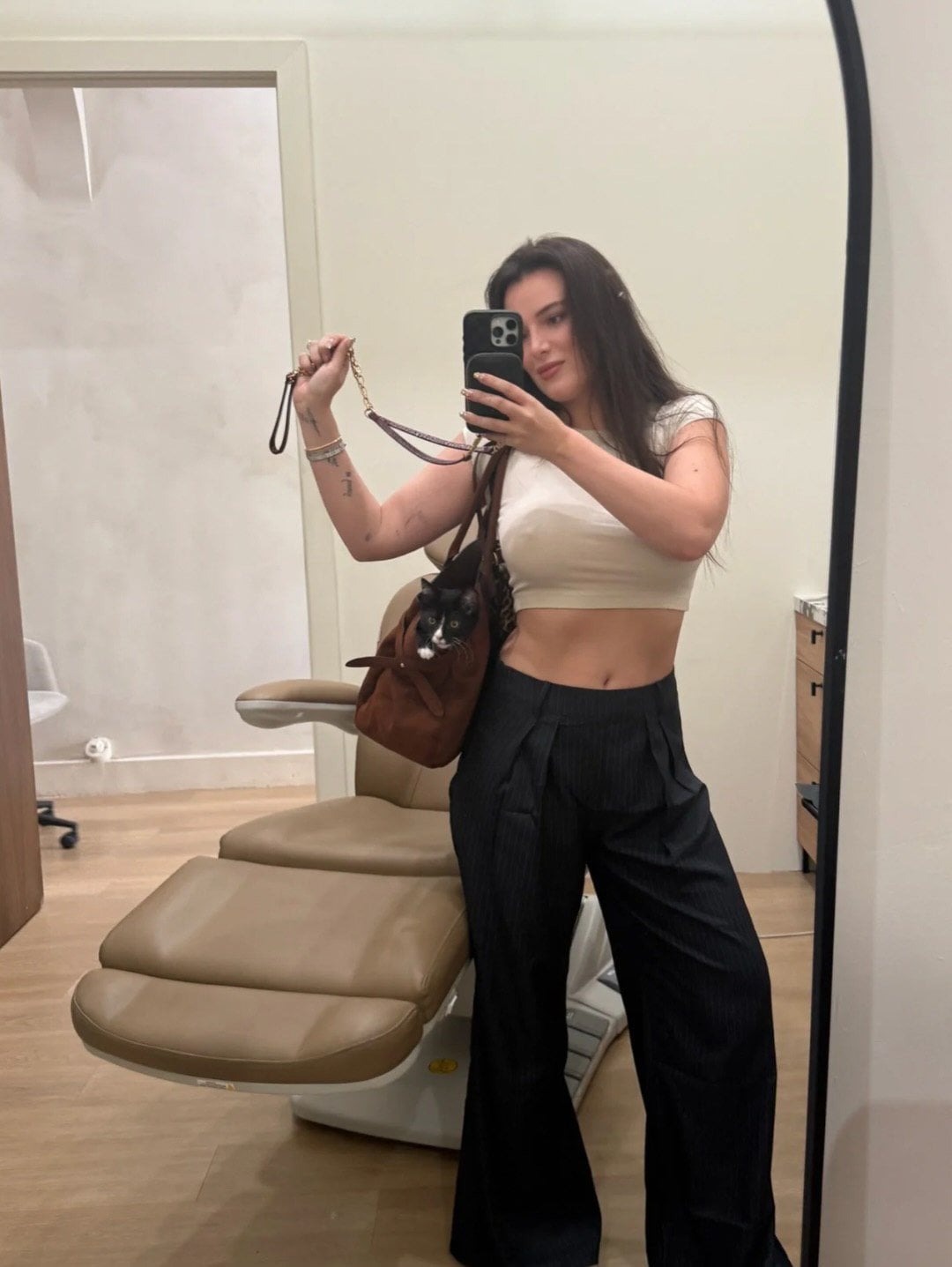 Белла Торн опублікувала в Instagram нові пікантні селфі, на яких вона постала із замшевою коричневою сумкою на плечі, у якій сидів милий котик.