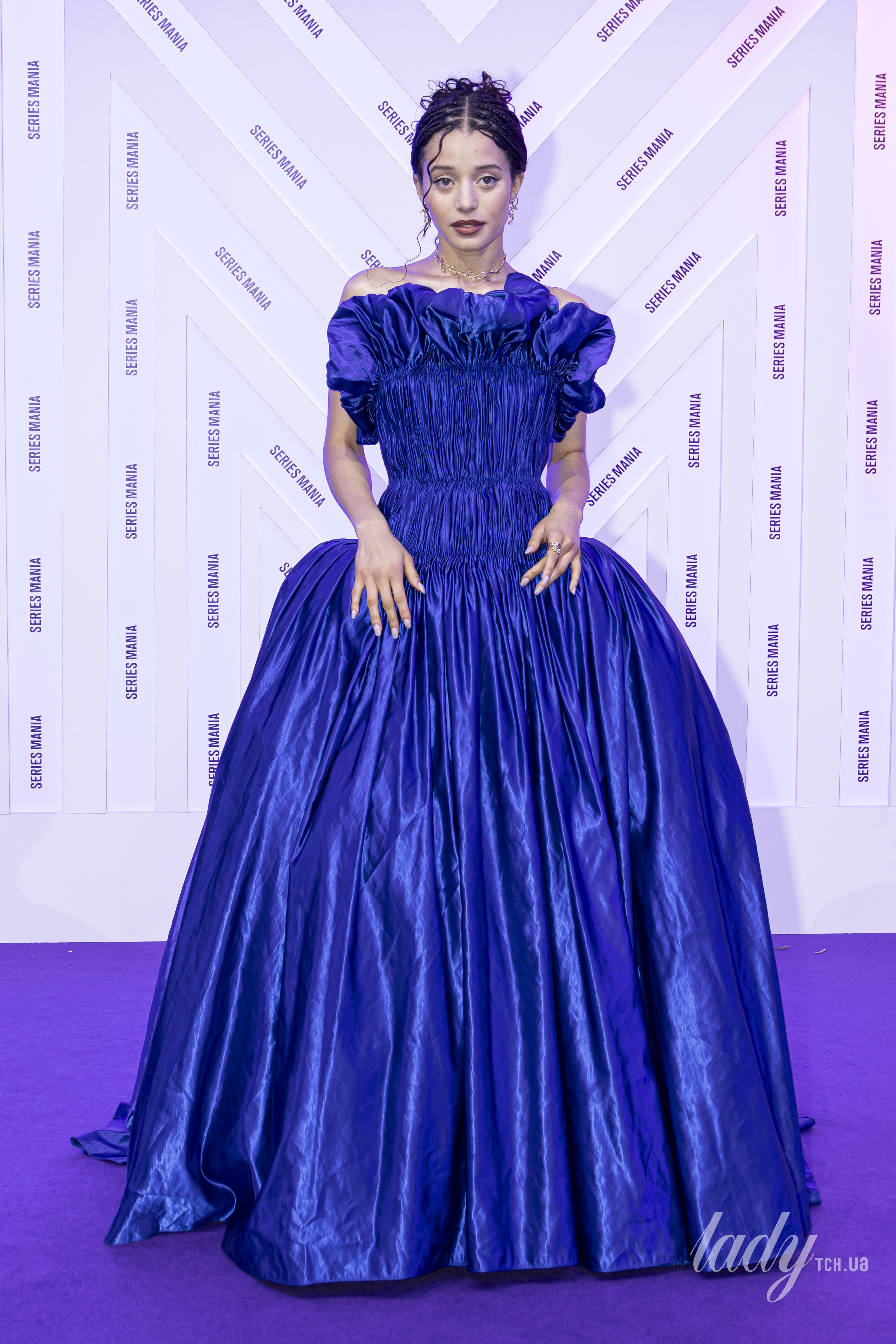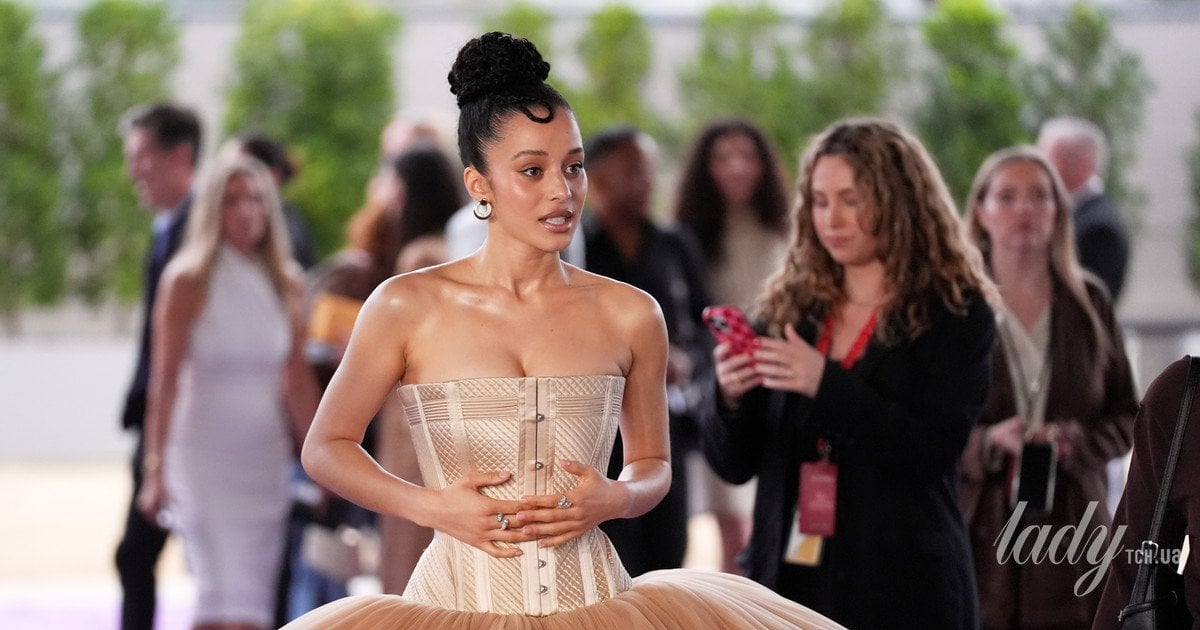 Раніше акторка також прийшла на прем’єру у Франції у синій сукні Louis Vuitton зі скульптурним об’ємним плісованим бюстьє та дуже пишною спідницею, яка також мала складки і шлейф. Верх сукні прикрашала об’ємна рюша і це була дуже незвичайна і цікава деталь.
