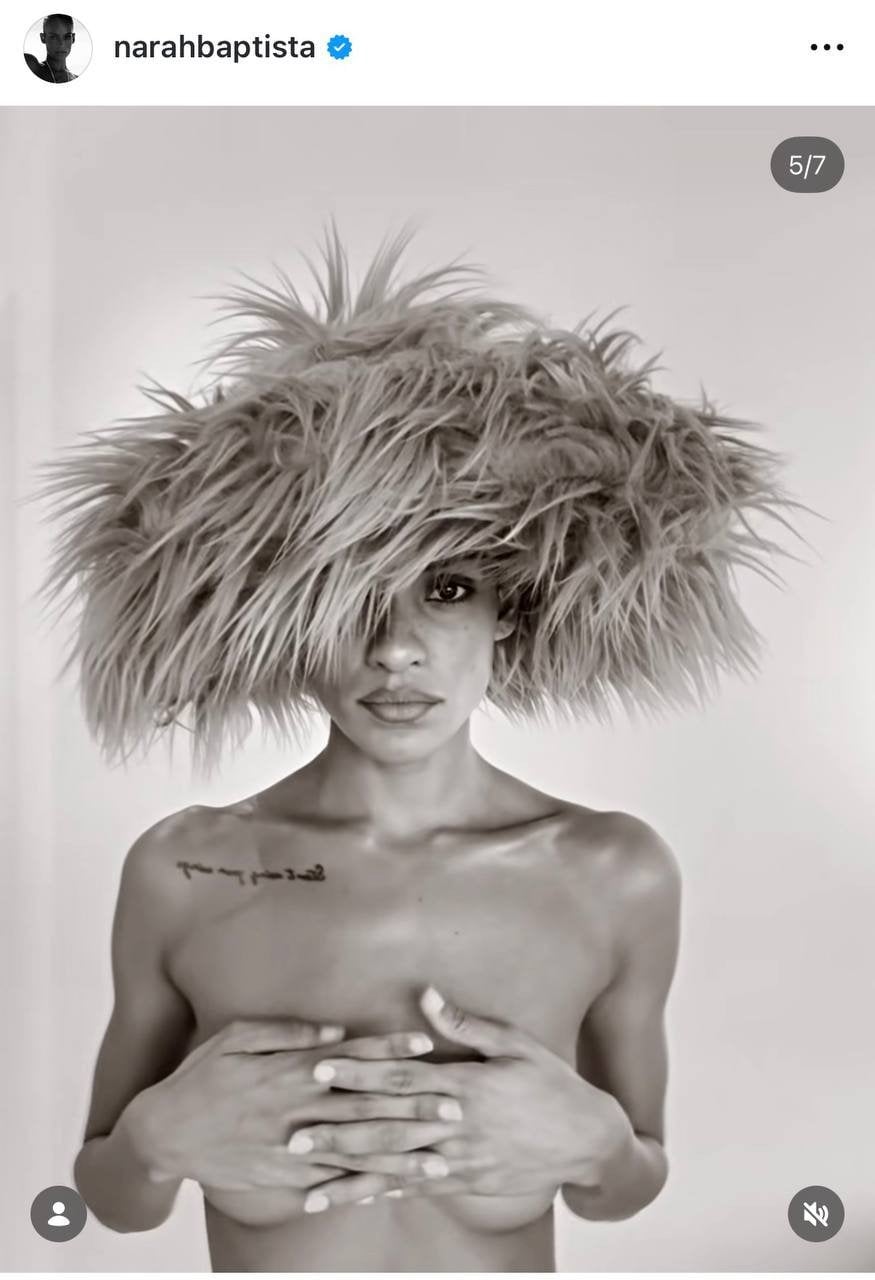 29-річна австралійська модель бразильського походження Нара Баптіста поділилася у своєму Instagram кількома фотографіями, на яких вона позувала топлес, прикриваючи оголені груди руками.