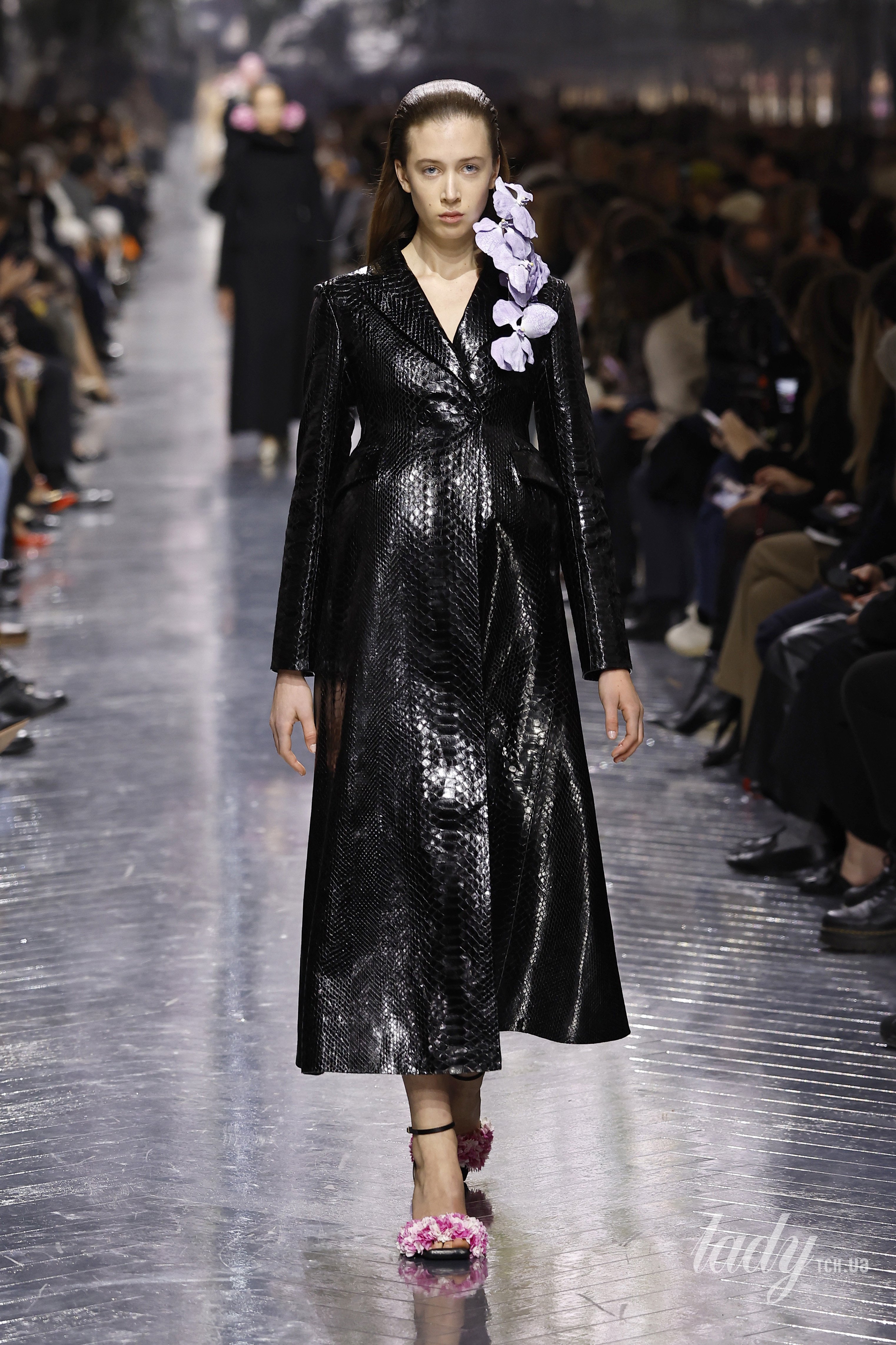 Шоу бренду було одним із найочікуваніших на Тижні моди і зібрало багато поціновувачів марки, клієнтів бренду, зірок та інфлюенсерів. Сандей Роуз продемонструвала на подіумі, який нагадував квітковий сад, лише один образ — лук включав чорне пальто із текстурної шкіри, підкресленою талією та одним ґудзиком. Це л лук доповнювала прикраса у вигляді квітки орхідеї блакитного кольору та чарівні босоніжки, теж прикрашені квітами, але рожевого відтінку.
