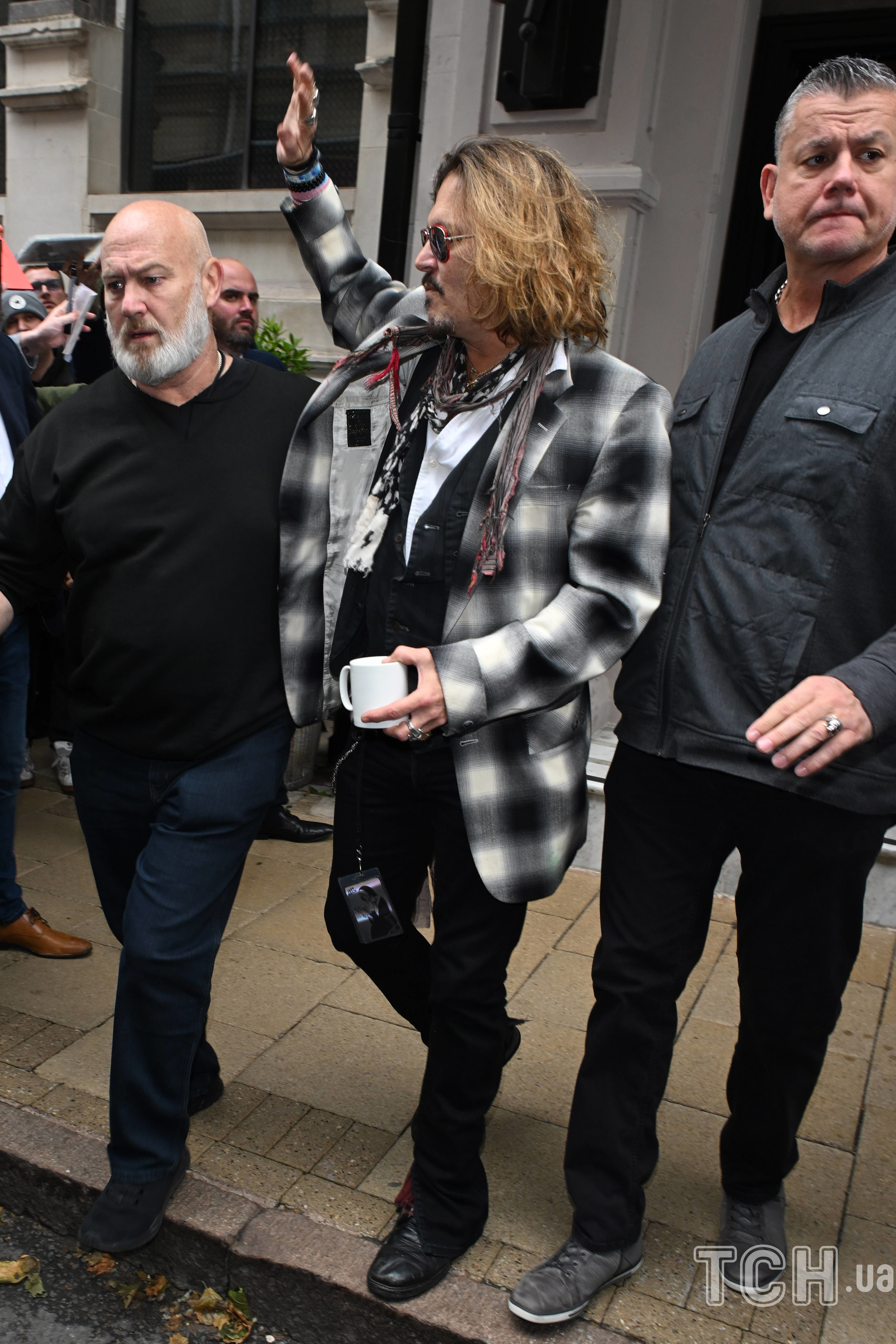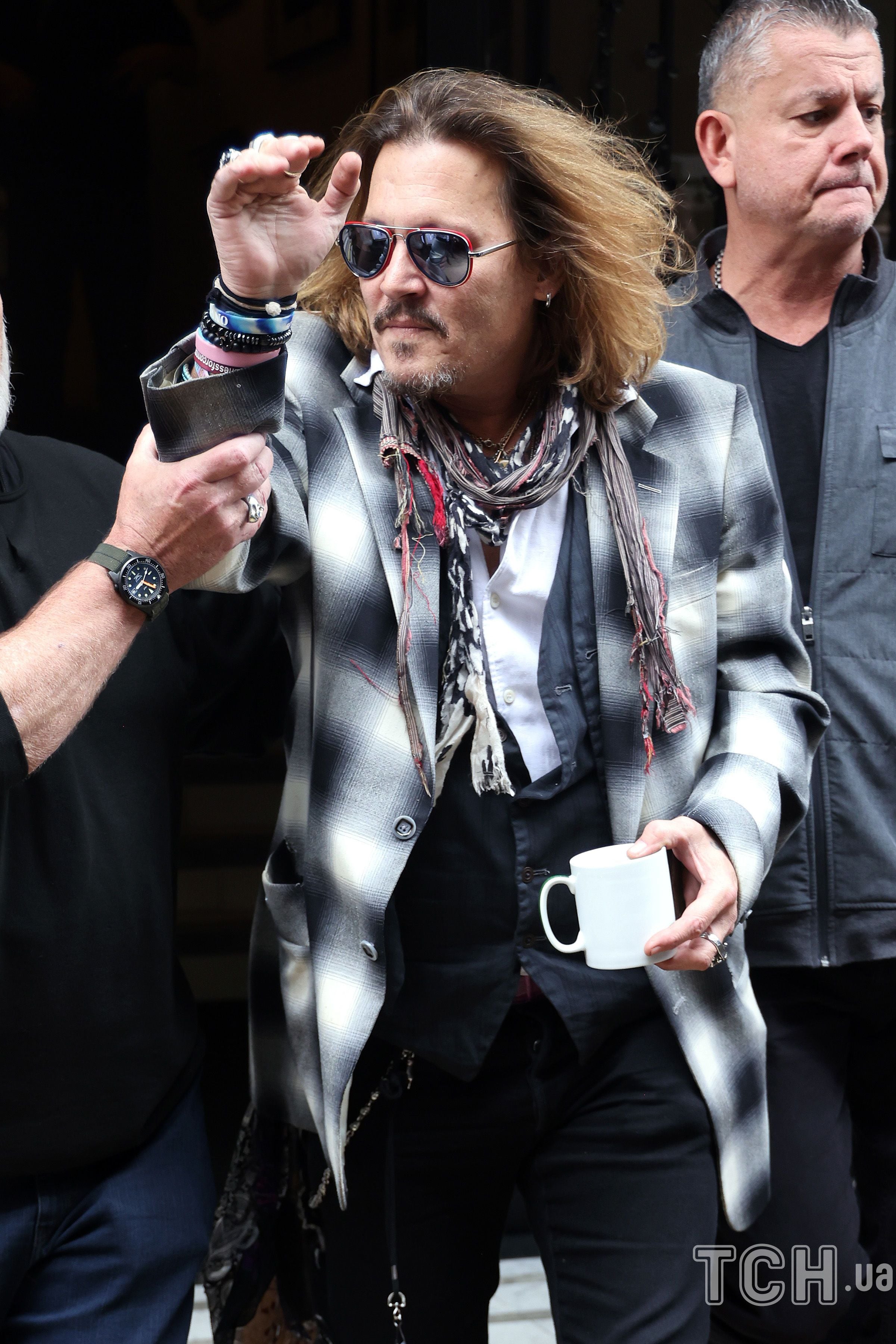 Депп був одягнений у чорно-білий картатий блейзер і один зі своїх фірмових шарфів, коли його вітав натовп фанатів біля готелю. Він був у хорошому настрої після перемоги над своєю ексдружиною Ембер Герд у суді минулого тижня.