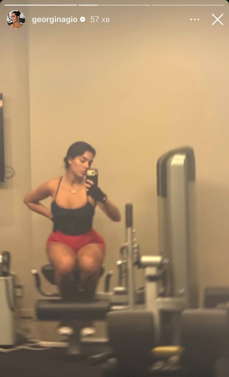 Сама ж Джорджина теж займалася. Вона вибрала тренажер для квадрицепсів.