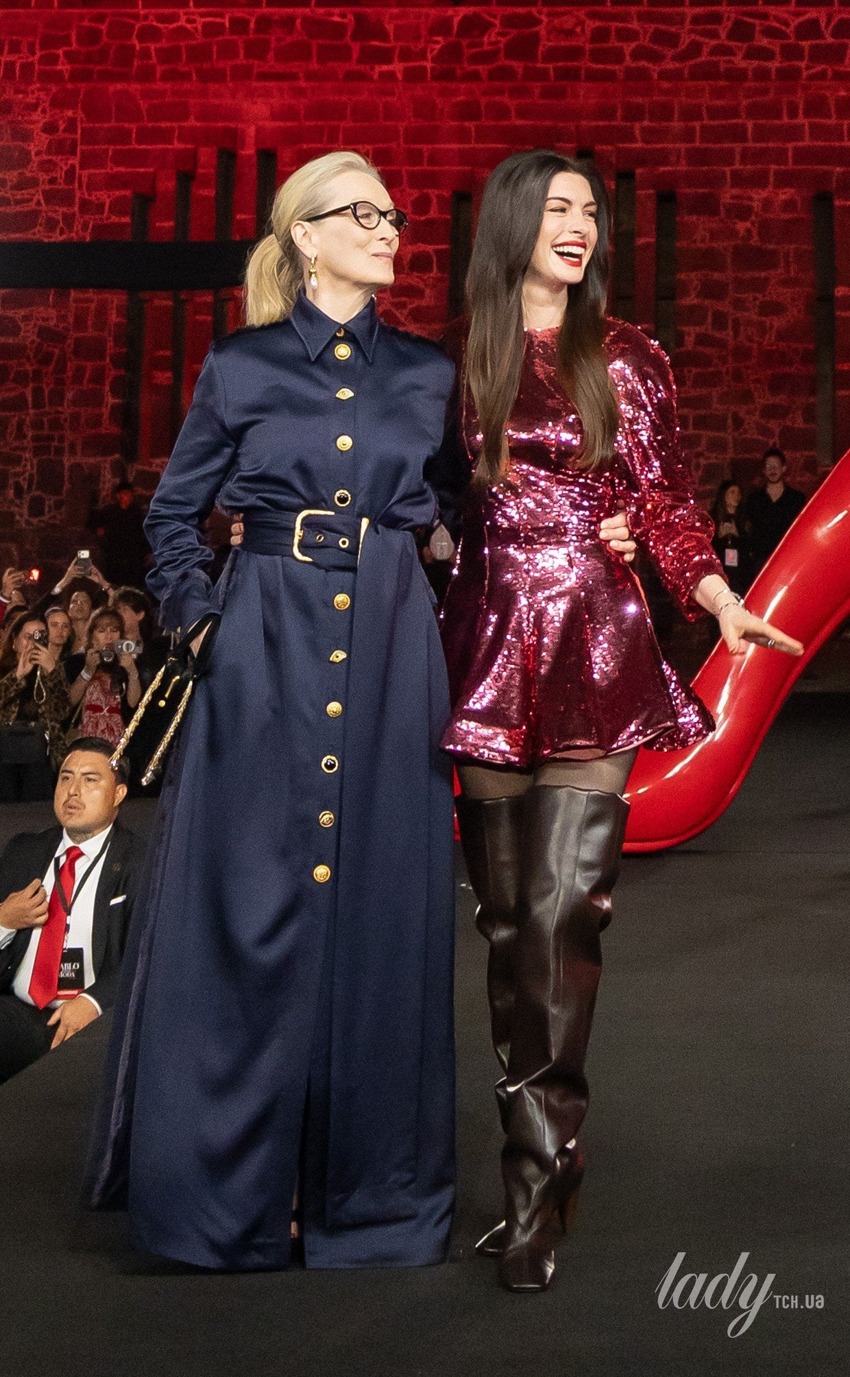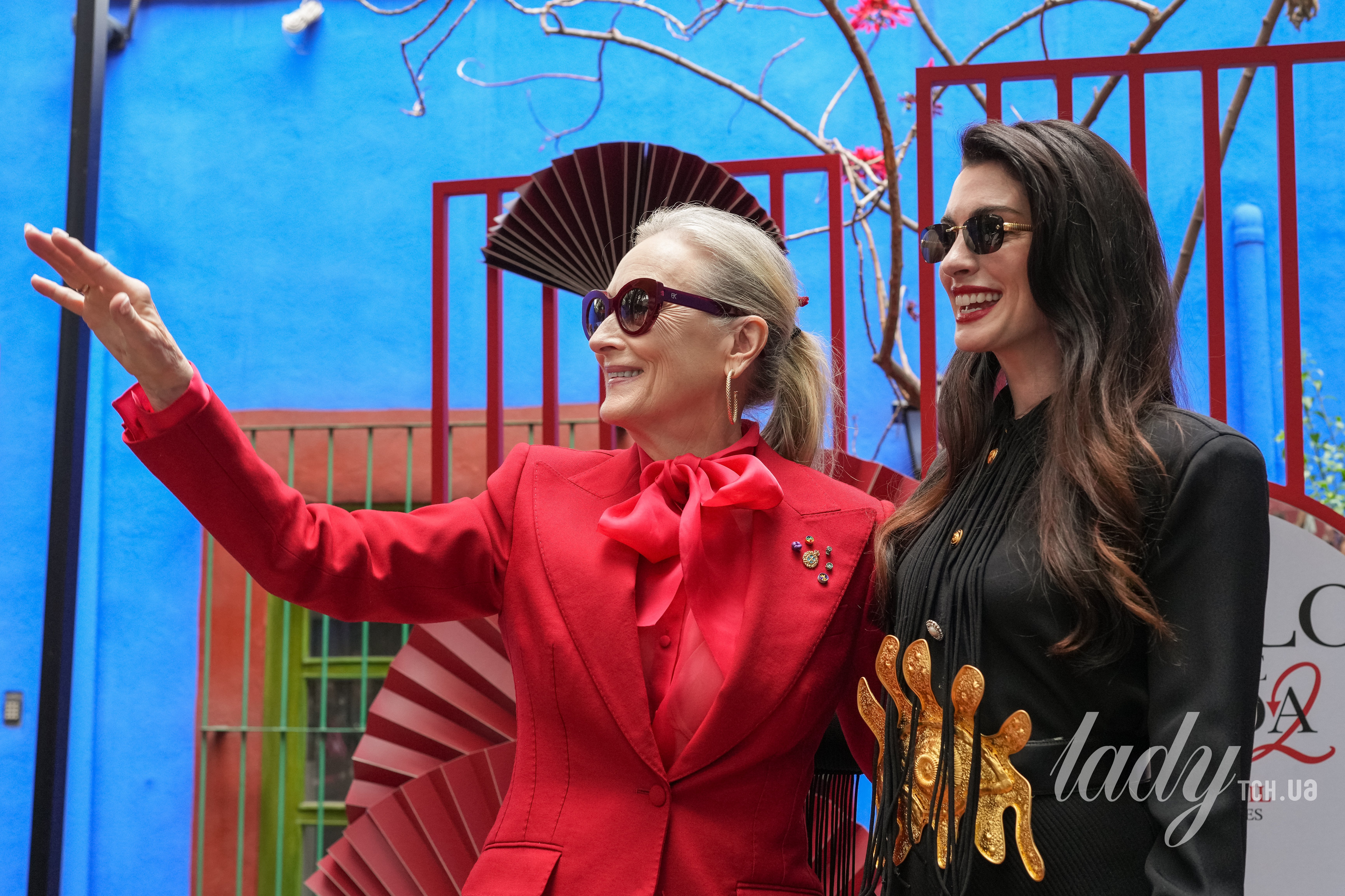 Енн Гетевей та Меріл Стріп просто сяяли, коли з’явились на публіці, і ця їхня спільна поява — один з найочікуваніших промотурів року, тому зірки приготувались і підібрали особливо стильні образи, у яких мали розкішний вигляд.