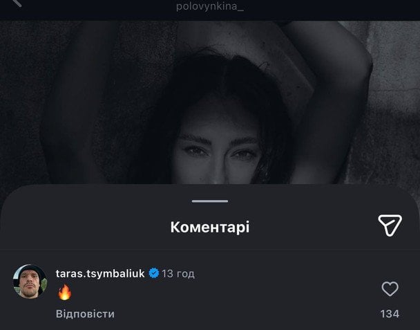 До речі, фотосет Насті не залишив байдужим і Тараса Цимбалюка, який відреагував на ці знімки. Актор у коментарях залишив смайлик у вигляді вогника.