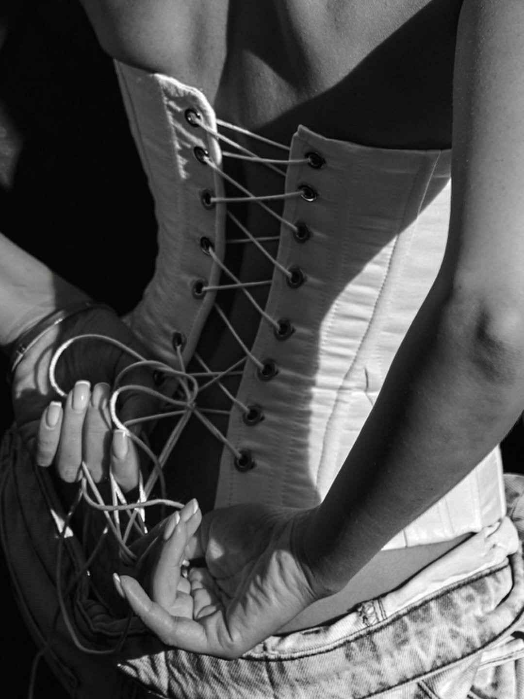 Анастасія постала у світлих джинсах і білому корсеті, який підкреслив її тонку талію.