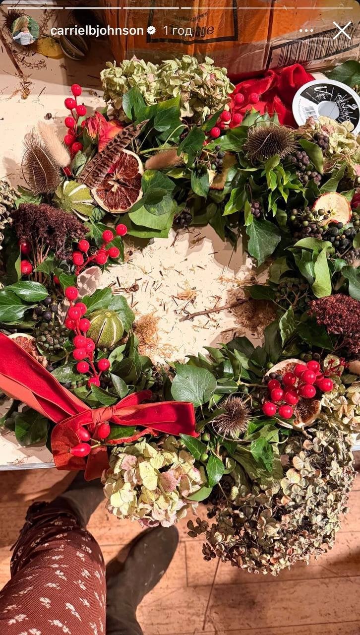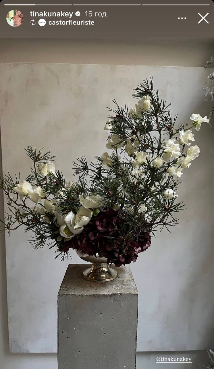 28-річна французька модель і колишня дружина актора Венсана Касселя — Тіна Кунакі — ялинку не показала, але похизувалася цікавою святковою композицією з хвойних гілок і квітів.