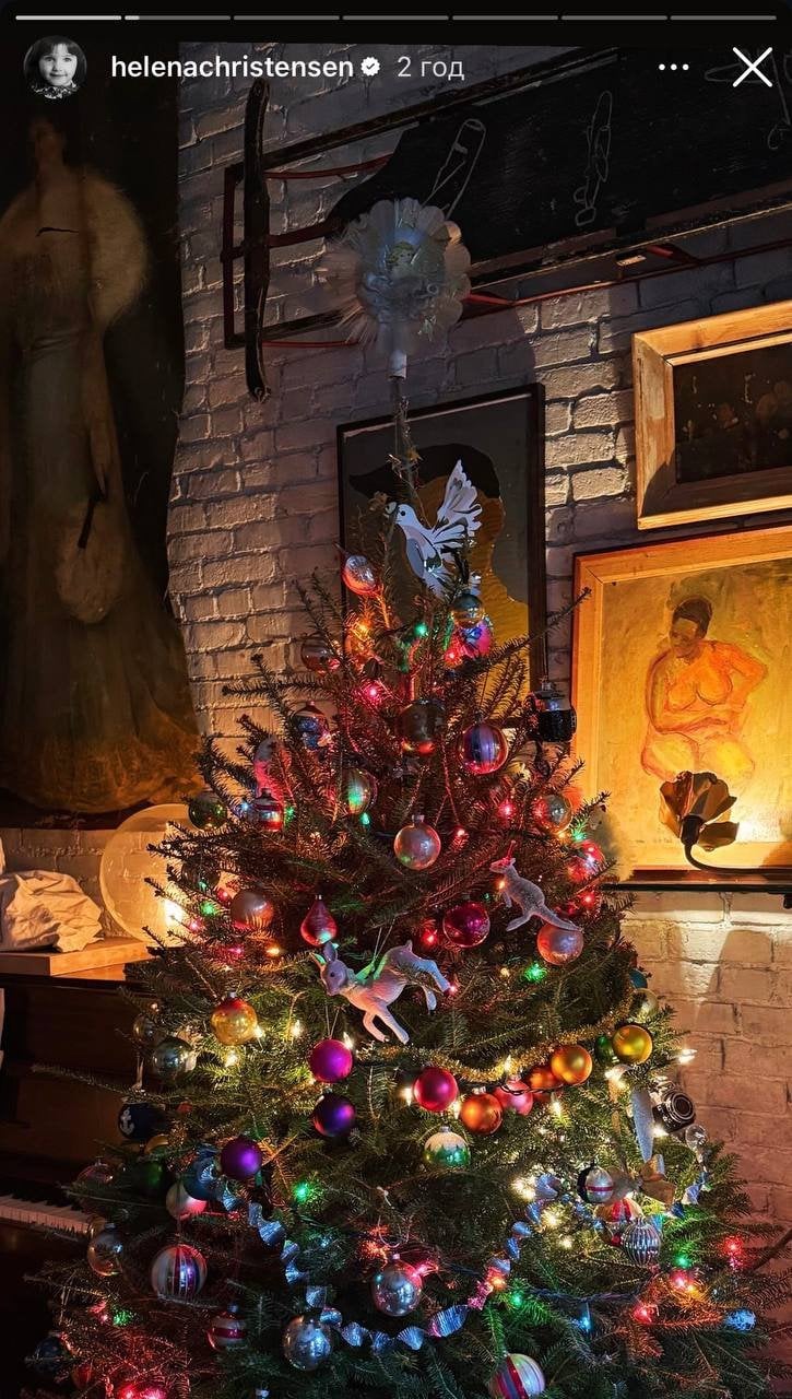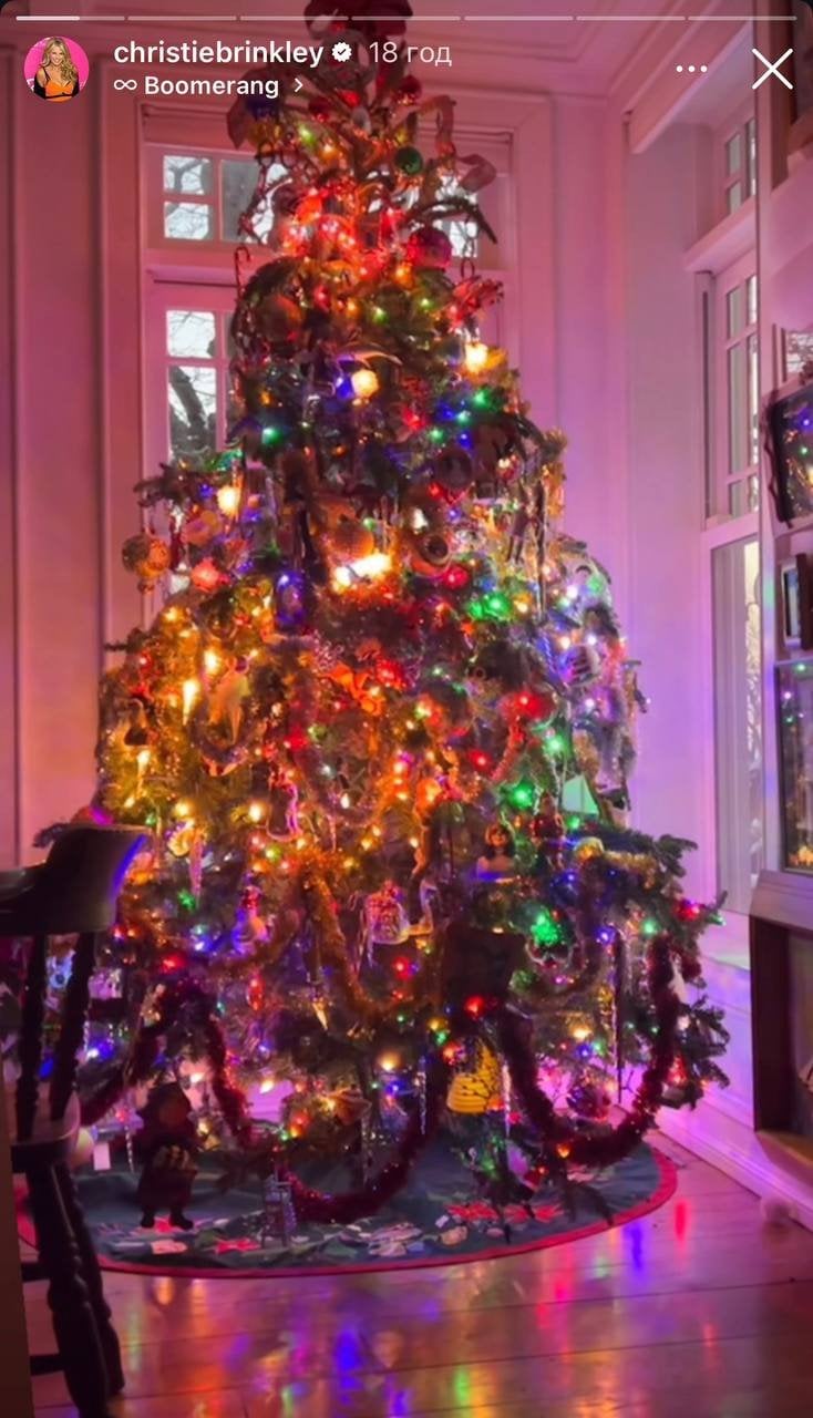 71-річна акторка і модель Крісті Брінклі вбрала ялинку в ретростилі: різнокольоровими кульками, жовтими гірляндами і великою кількістю мішури.