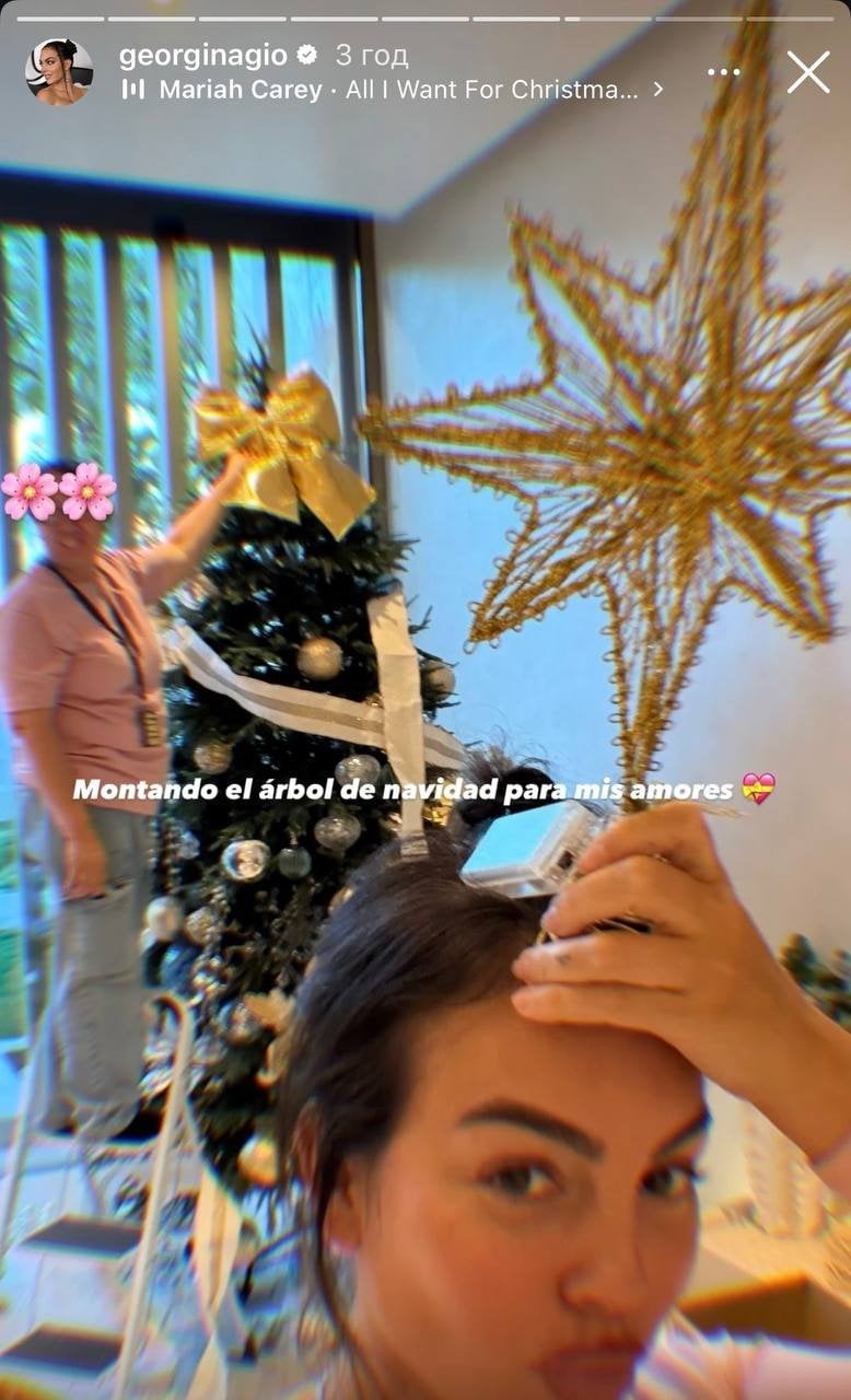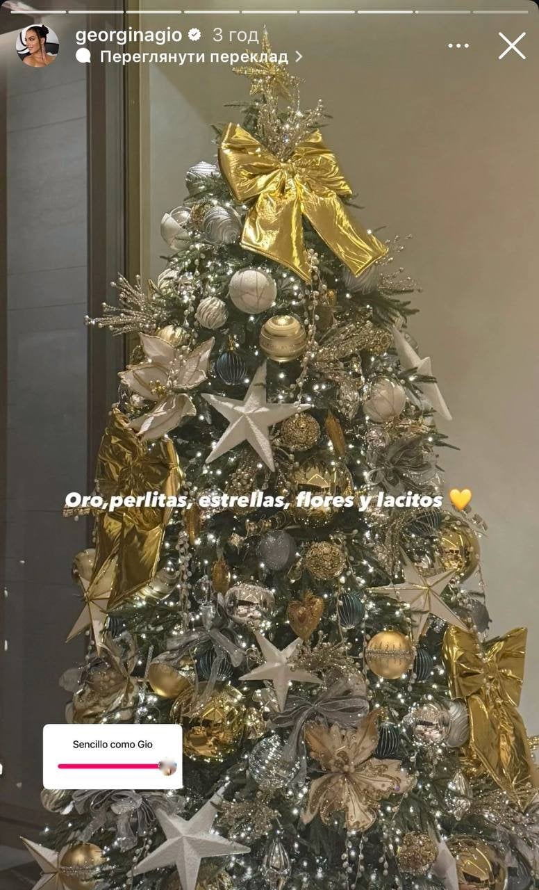 31-річна модель, інфлуенсерка і наречена футболіста Кріштіану Роналду — Джорджина Родрігес — підготувала сюрприз для своїх п’ятьох дітей і сама прикрасила ялинку, вибравши для цього біло-сріблясто-золоту гаму.