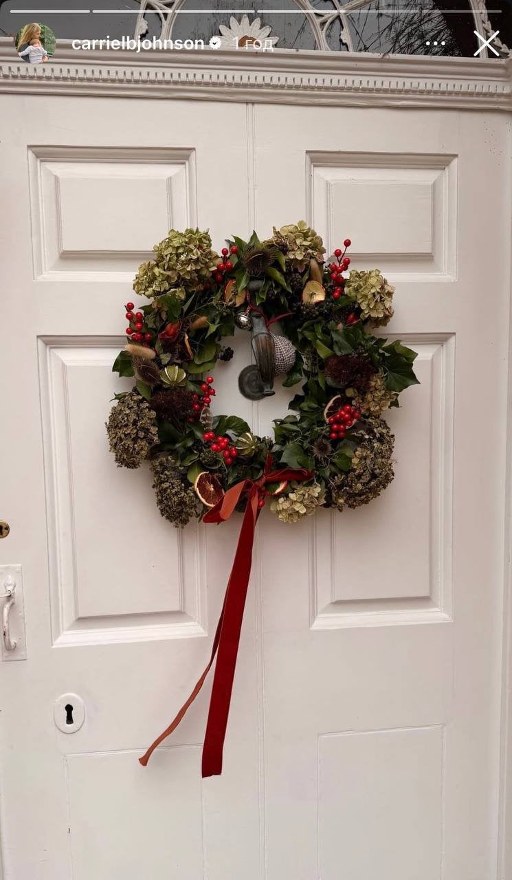 А на двері будинку повісили незвичний святковий вінок із гортензіями.
