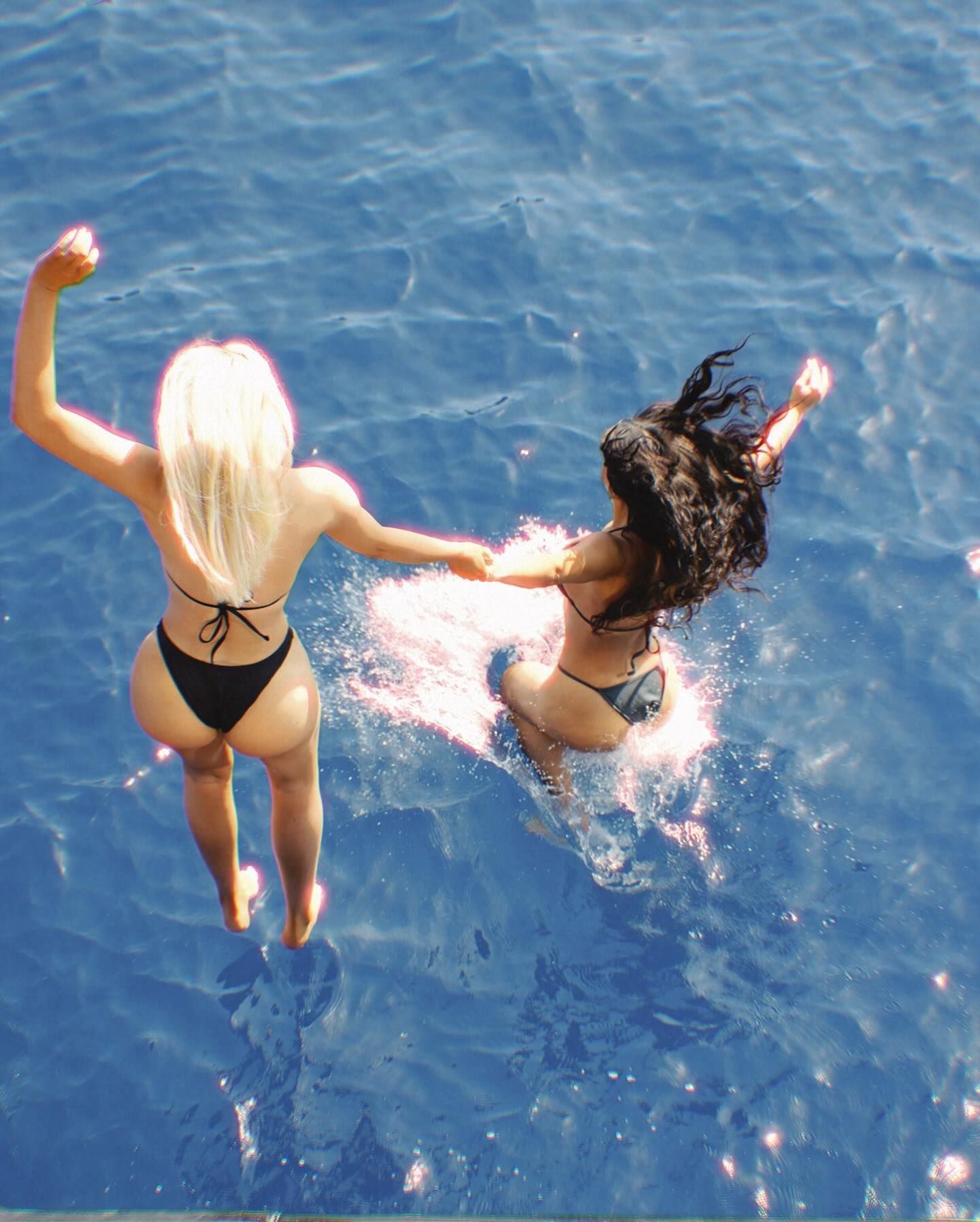 Кім разом із подругою – телезіркою Олівією Пірсон – пострибали і покупалися в морі. Вони були одягнені у чорні бікіні, у яких продемонстрували сексуальні форми.